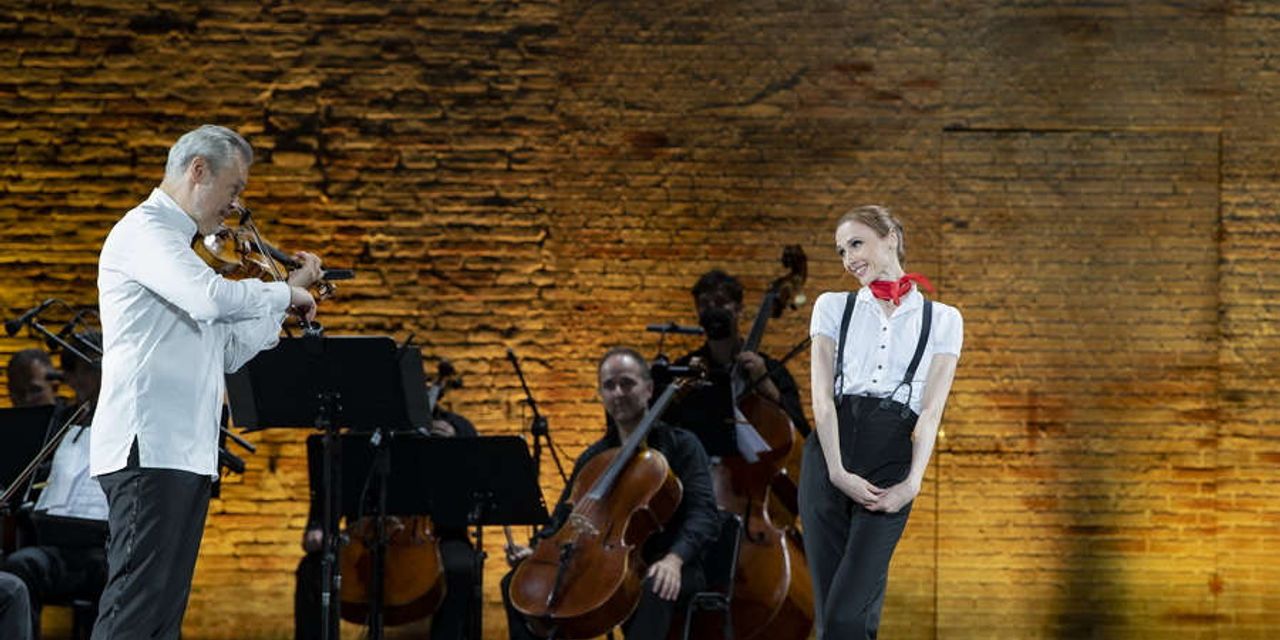 Единая драматургическая линия связывает череду скрипичных номеров в исполнении Вадима Репина и Камерного оркестра Большого театра и хореографических номеров, воплощённых Светланой Захаровой и премьерами Большого: Артемием Беляковым, Михаилом Лобухиным, Денисом Захаровым первый солист балетной труппы).