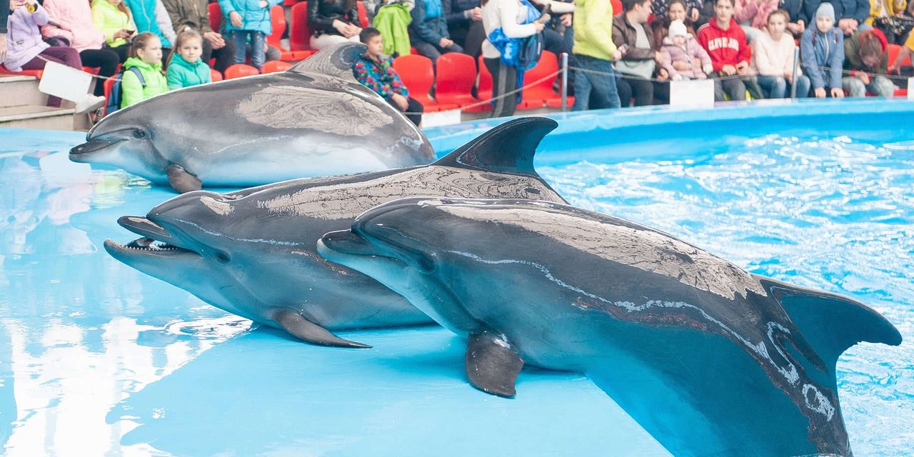Шоу дельфинов проходит ежедневно со вторника по воскресенье в 11:00, 13:00, 16:00 в понедельник — санитарный день. Продолжительность шоу 50 минут.