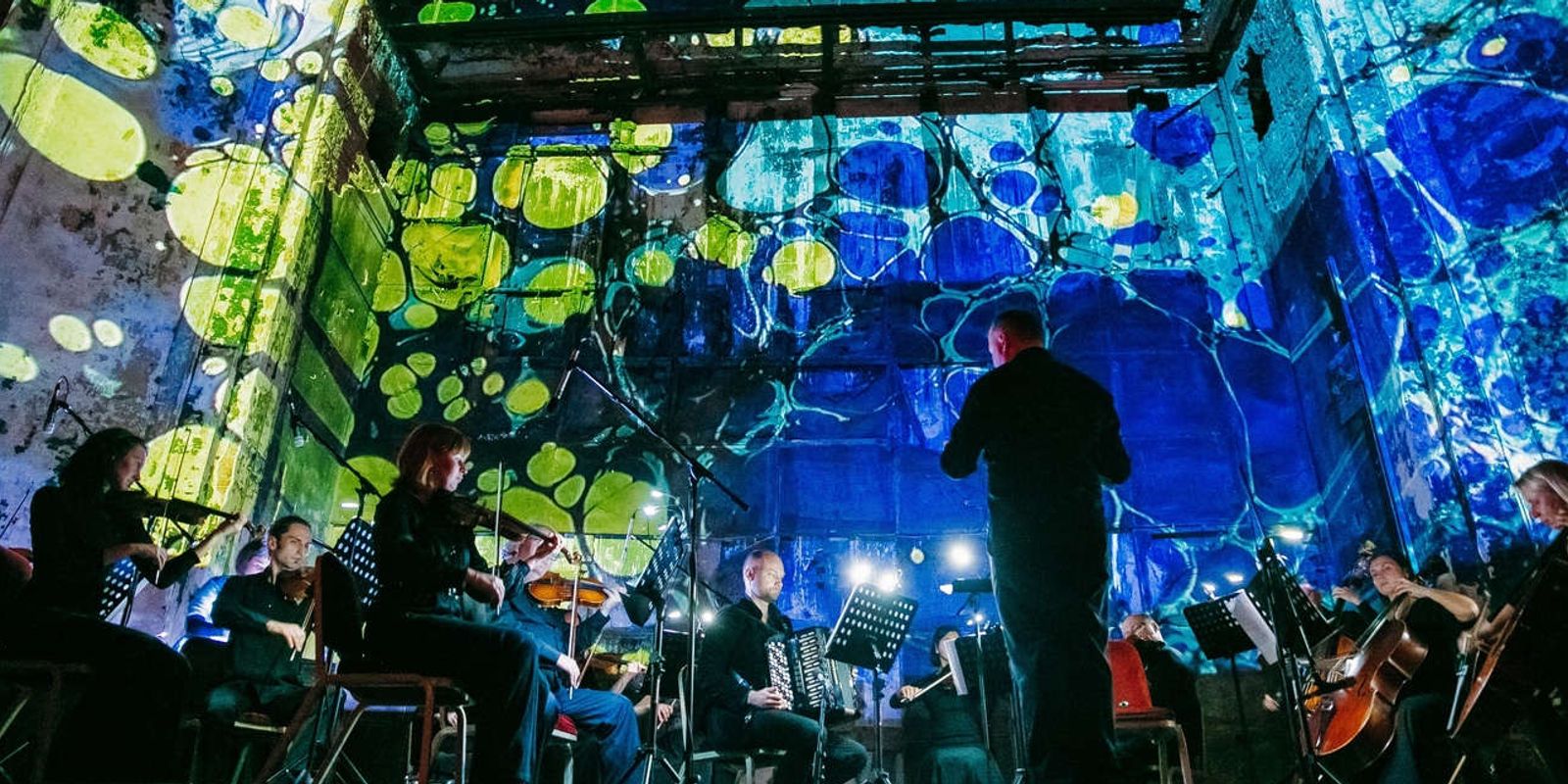 В темноте загадочной Анненкирхе прозвучат всемирно известные произведения Вивальди, Чайковского, Моцарта, Штрауса, Брамса и других великих композиторов в исполнении оркестра Olympic Orchestra, где над сценой на огромном фоне сгоревших стен будут спроецированы живые и красочные картины на воде.
