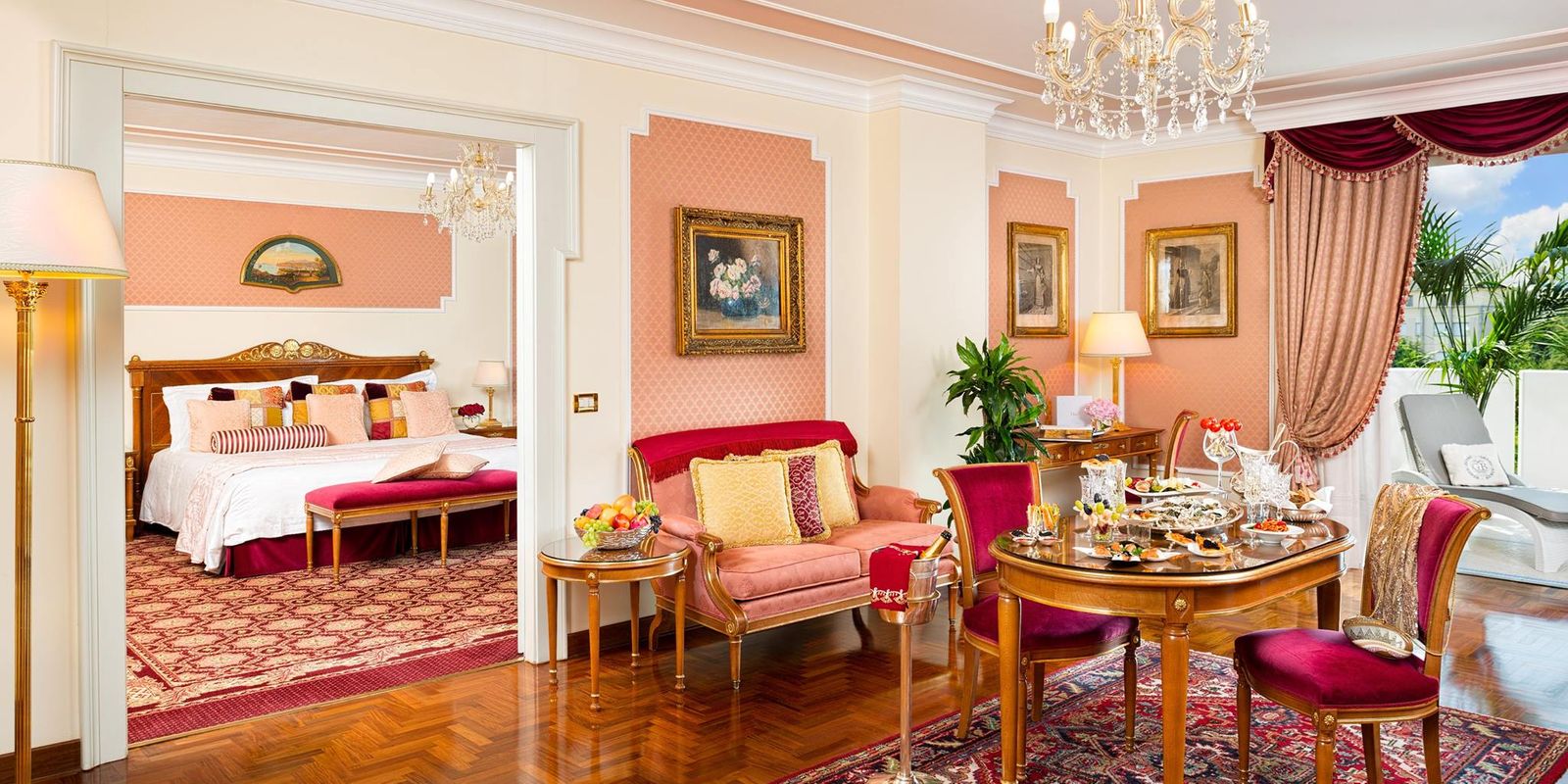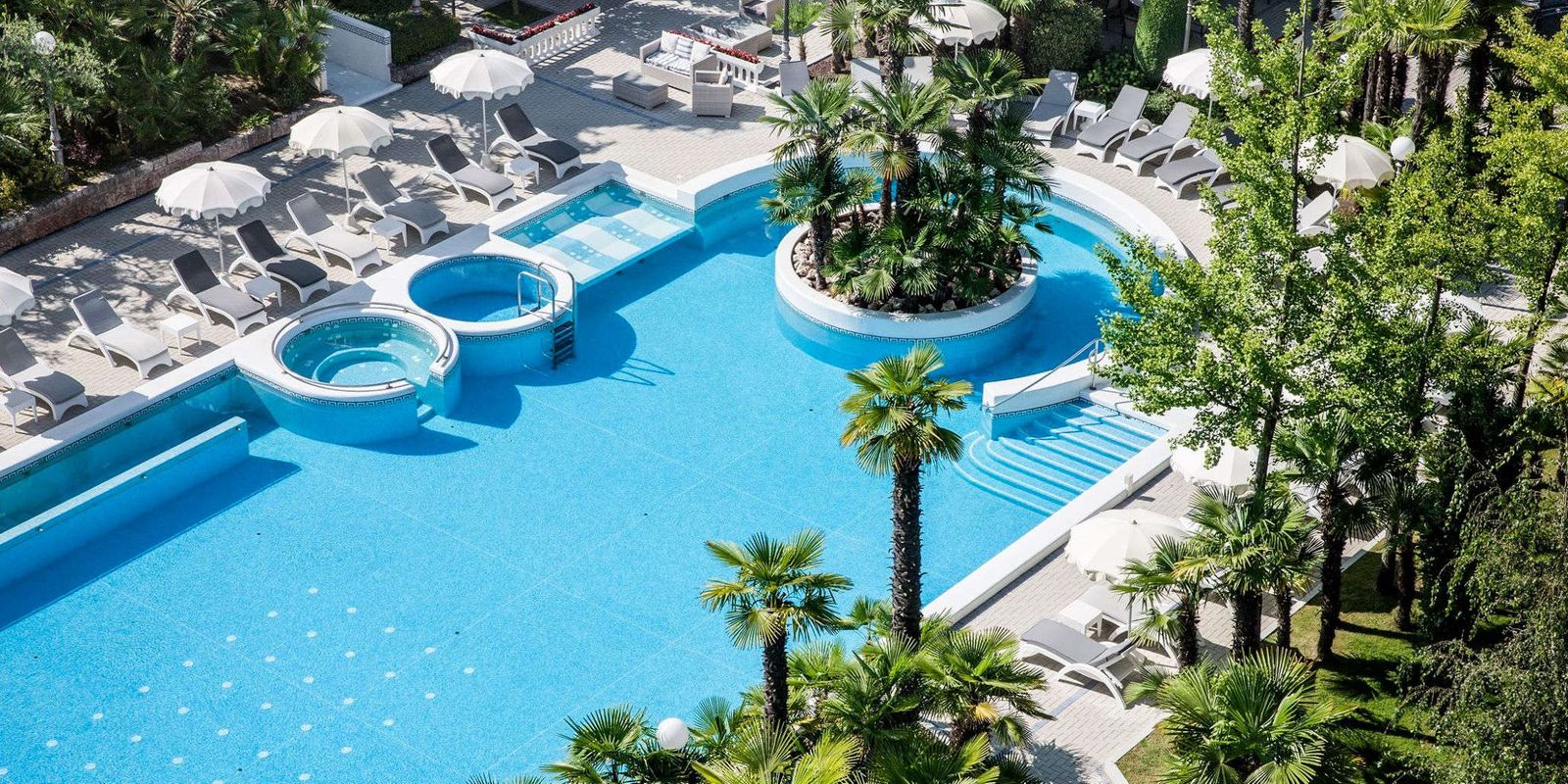 Великолепный Abano Grand Hotel расположился в сердце термального курорта, среди оливковых рощ и парка тропических растений. Интерьеры и убранство номеров — в стиле эпохи Людовика XV: много классической мебели, роскошных тканей, мрамора, античных статуй.