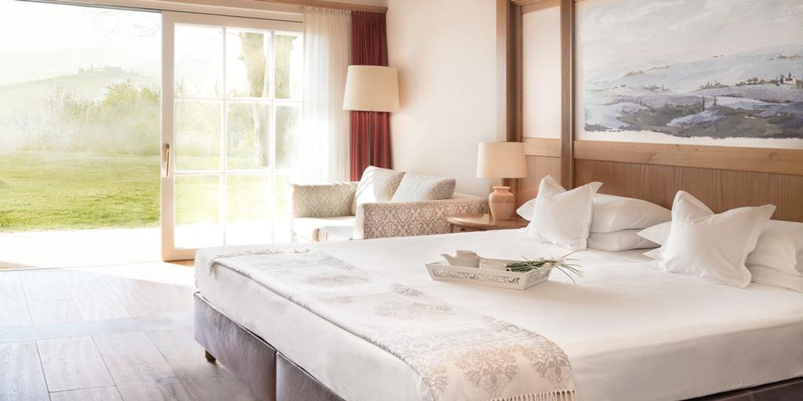 К услугам гостей — крытый и открытый бассейны площадью более 1 000 кв. м, тренажерный зал площадью 200 кв. м с панорамным видом на загородную местность Тосканы, финская сауна, травяной кальдарий, турецкая баня, прокат бесплатных велосипедов и электровелосипедов.