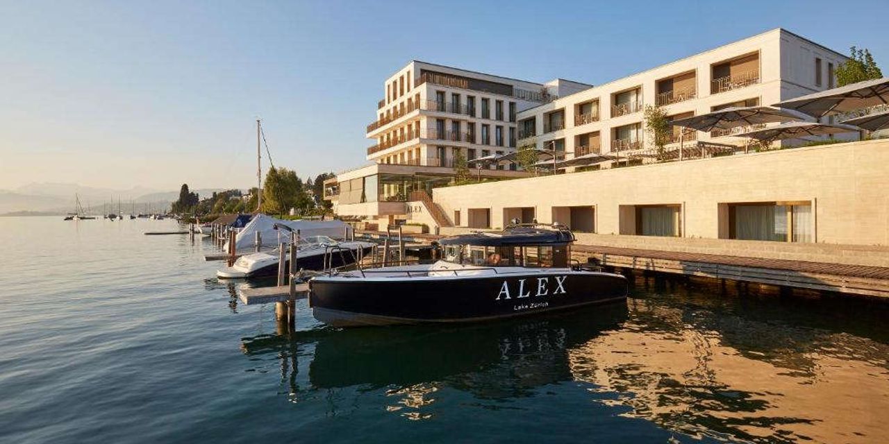 Открытый в 2019 году отель Alex Lake Zürich подкупает простой, но эстетской архитектурой – будто бы кубики белого сахара сложили друг на друга, присовокупив собственный яхтенный причал и зонты летних веранд.