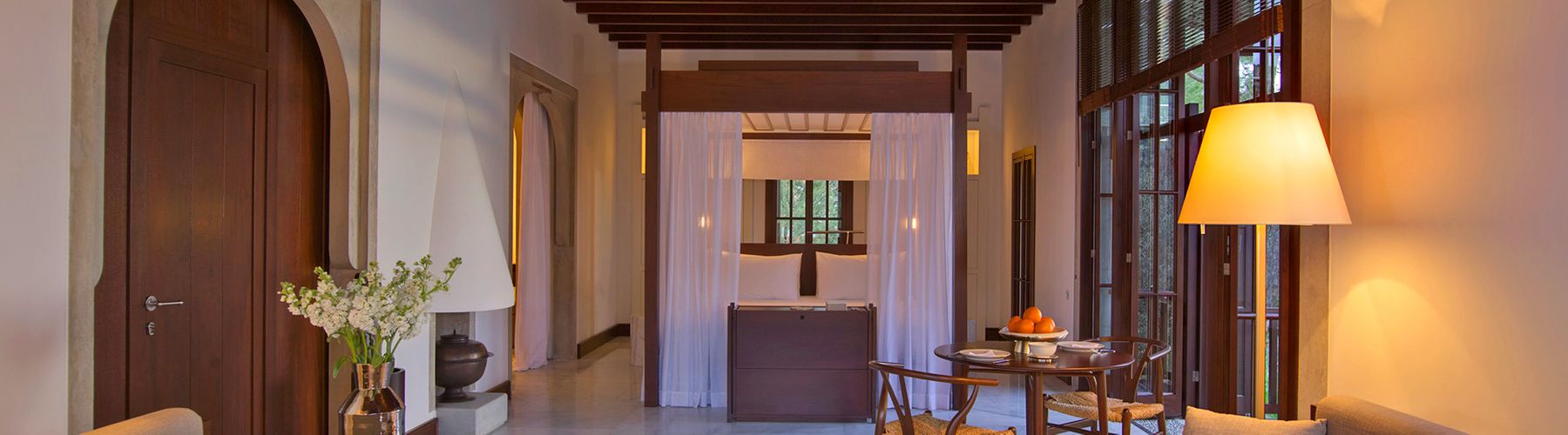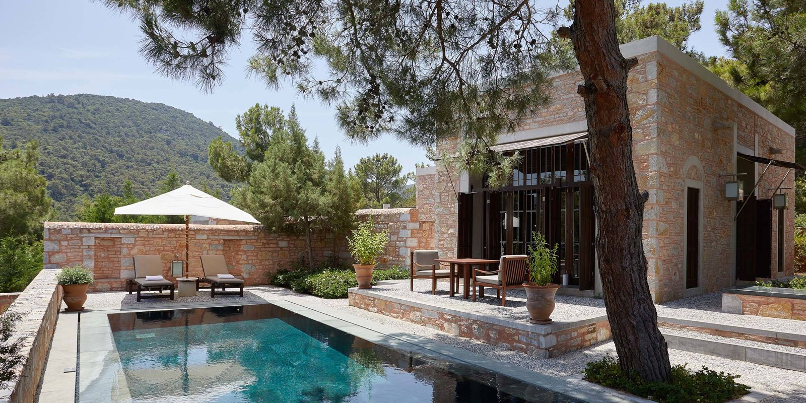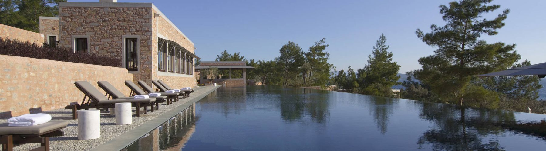 Отель Amanruya в Бодруме представляет собой комплекс коттеджей в стиле турецкой деревни на склоне живописного холма, спускающегося к частному галечному пляжу с террасами и шезлонгами. 36 каменных павильонов с собственными садами и бассейнами окружены вековыми оливами и сосновым лесом. В архитектуре и интерьерах сочетаются османский и средиземноморский стили. Это идеальное уединённое место для романтического отдыха или медового месяца.