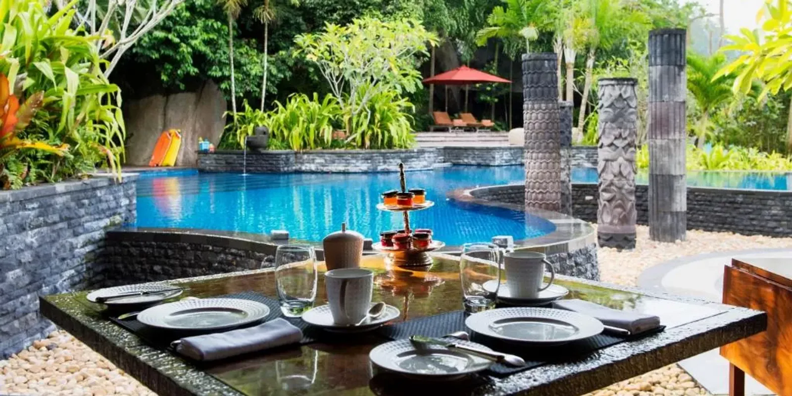 Виллы спроектированы так, чтобы органично вписываться в окрестный ландшафт. Каждая окружена пышной зеленью, что создает атмосферу приватности. На каждой есть терраса и собственный бассейн. В интерьерах преобладают натуральные дерево и камень. К услугам гостей — персональный батлер для исполнения всех пожеланий, от организации приватного ужина до частных занятий йогой.