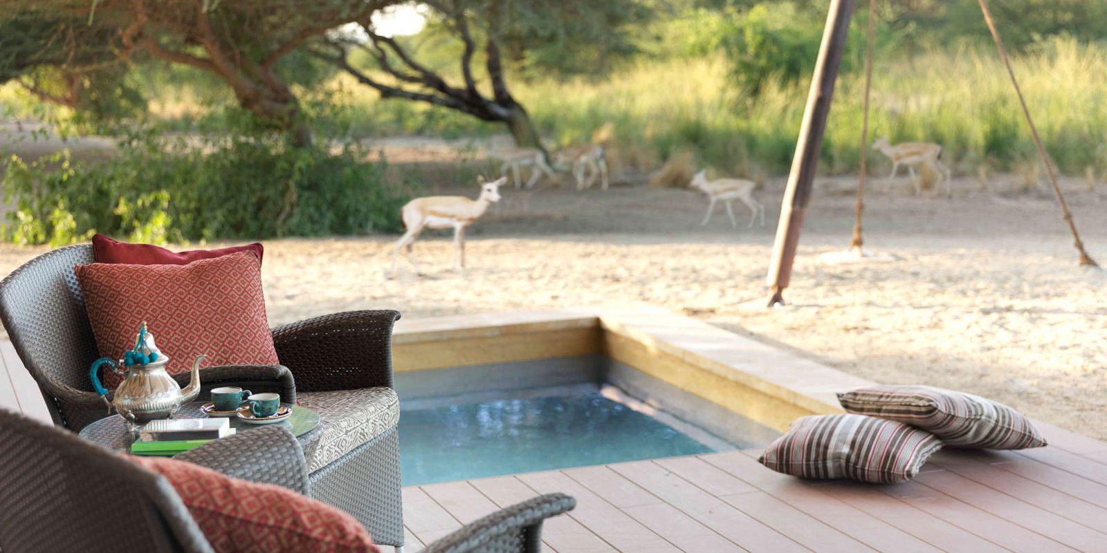 Остров Сир-Бани-Яс — охраняемый заповедник недалеко от побережья Абу-Даби, где в естественных условиях обитают дикие животные. Расположенный в глубине острова отель Anantara Sir Bani Yas Island Al Sahel Villas состоит из 30 вилл, разбросанных по пышной саванне.