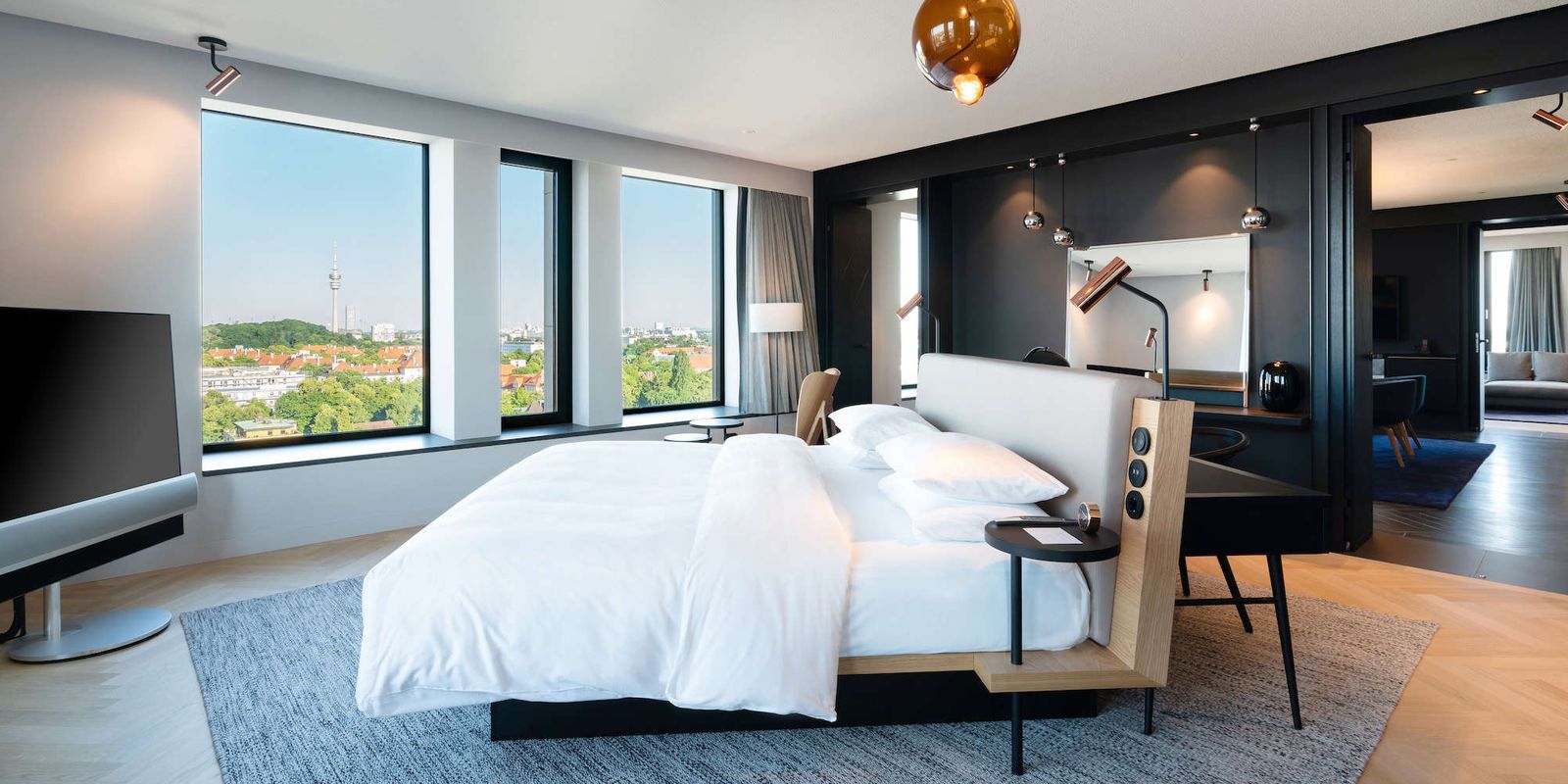 277 резиденций предполагают вариативность размещения — пентхаус с гостиной, столовой и миниатюрной кухней, лофт с панорамными окнами или большой люкс окнами на Мюнхен и Альпы вдали.