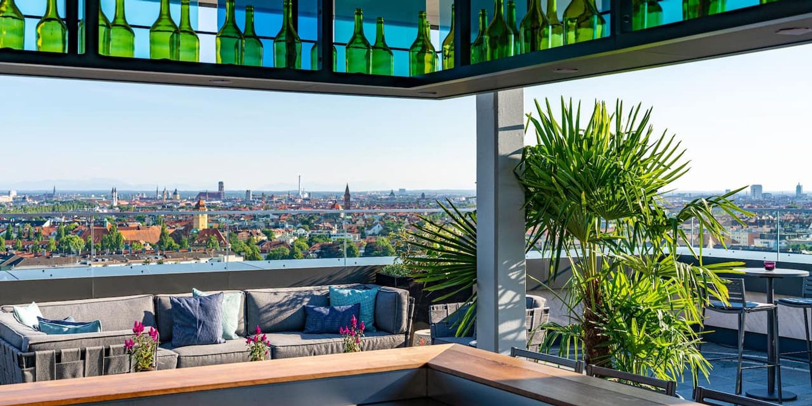 Великолепные виды на Олимпийский парк из роскошного спа-салона и самого высокого бара на крыше Мюнхена.