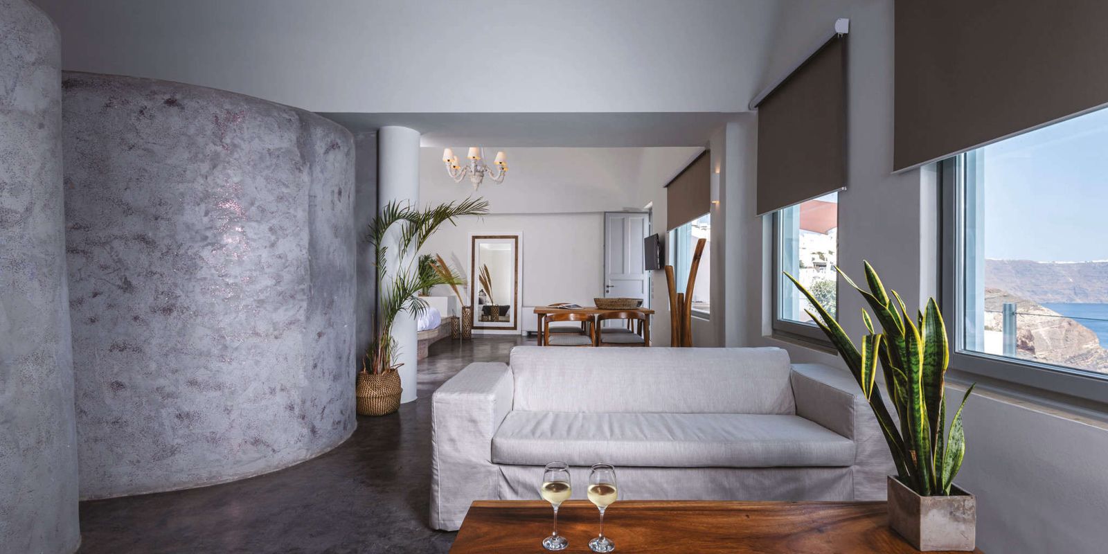 Комплекс из нескольких вилл террасами спускается к скалистому берегу, объединяя утончённость и сдержанную роскошь, доступную избранным. Элементы минималистского дизайна великолепно сочетаются с потрясающими закатами, 33 люкса обставлены мебелью всех оттенков яичной скорлупы с локальными взрывами красного и синего, чтобы пощекотать чувства. Каждый номер дополнен собственным пейзажным бассейном или гидромассажной ванной с подогревом.