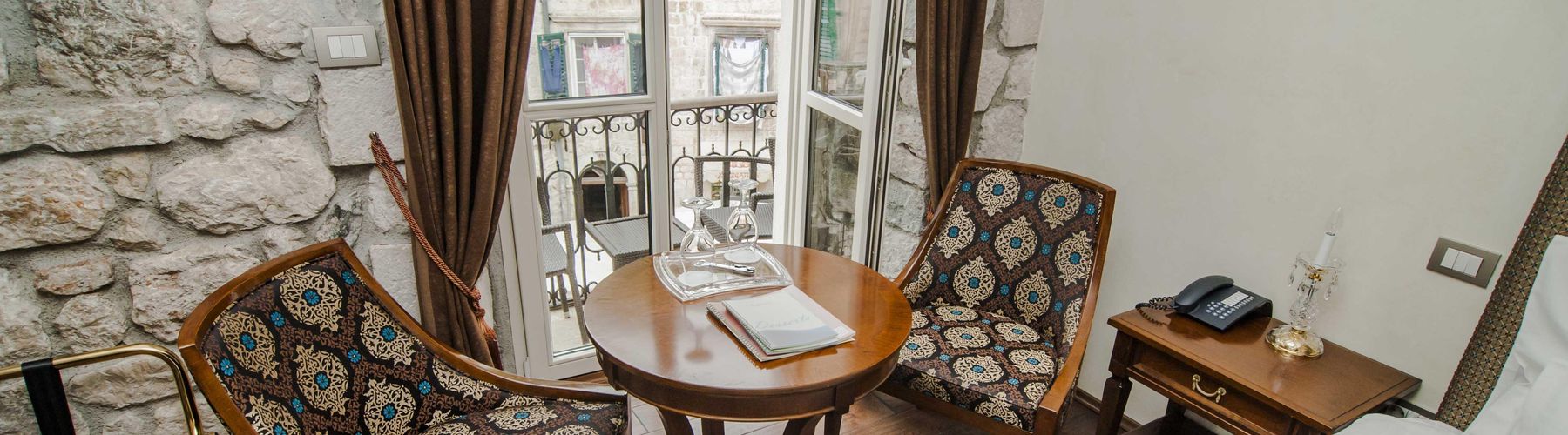 Этот 4-звездочный бутик-отель расположен в самом центре Старого города Котора, в палате Буча — дворце, построенном в конце XIII в.