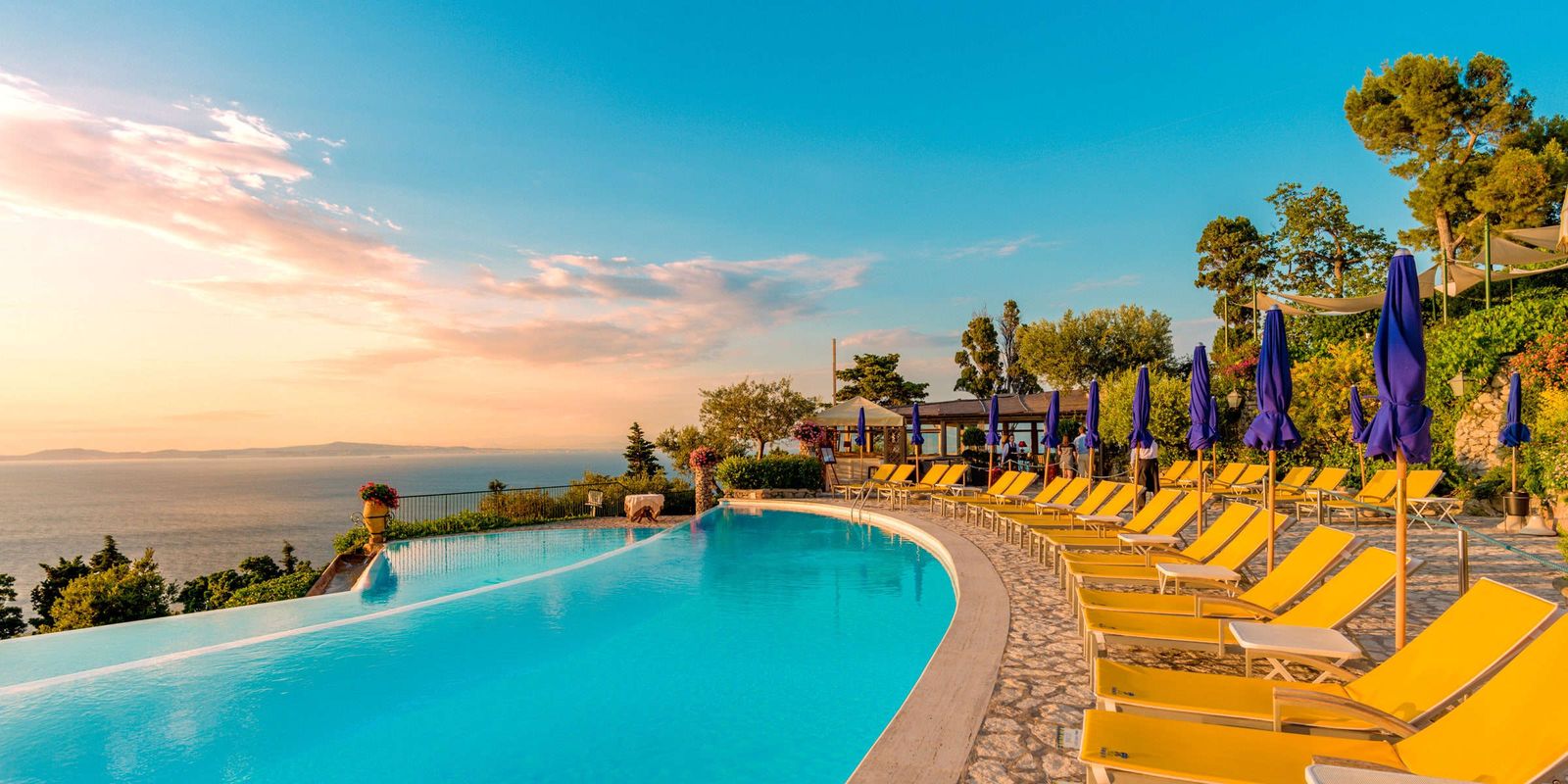 Капри — остров, где чувствовать себя счастливым можно в любое время и в любом месте, однако ничто не сравнится с драматической красотой и продуманной роскошью пятизвездочного отеля, будто подвешенного между небом и морем. Caesar Augustus расположена на высоте около 300 метров, что гарантирует идеальный вид на Неаполитанский залив и побережье Амальфи.