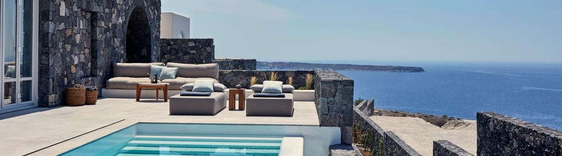 Это один из немногих отелей Санторини, откуда открываются панорамные виды как на кальдеру, так и на закаты над Эгейским морем — без толп и суеты. Атмосфера камерная, уединённая, элегантная: всего 24 элегантные виллы с частным бассейном и террасой. Некоторые виллы предлагают две спальни и подходят для семей или компаний друзей.