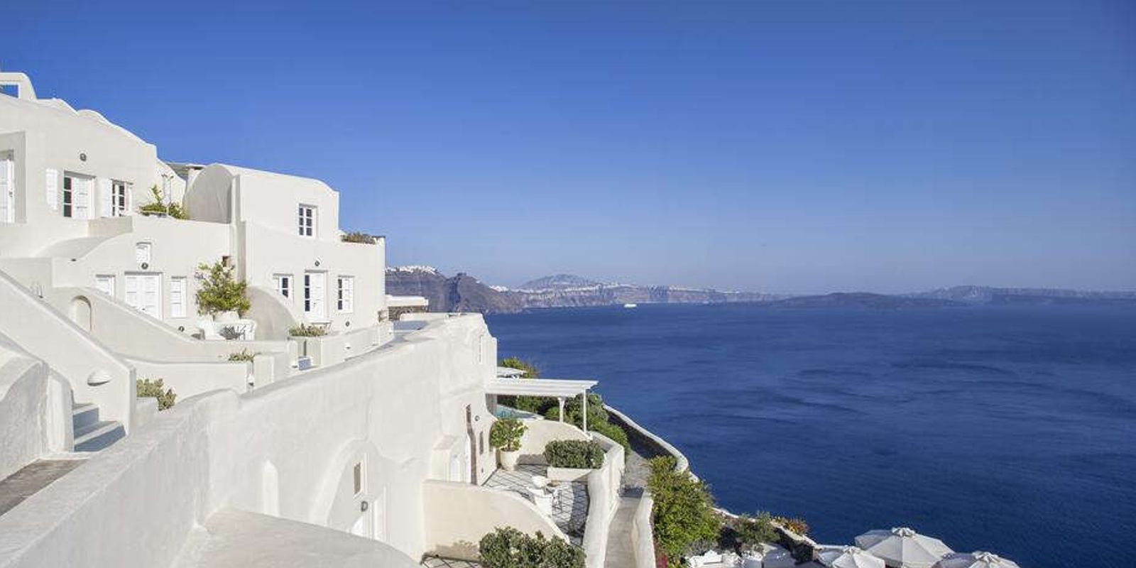 Canaves Oia Suites — роскошный отель на Санторини, расположенный в живописном городке Ия на склоне с видом на кальдеру. История этого места началась в 1985 году: пещеры XVII века, служившие винными хранилищами, превратили в роскошные гостиничные номера.