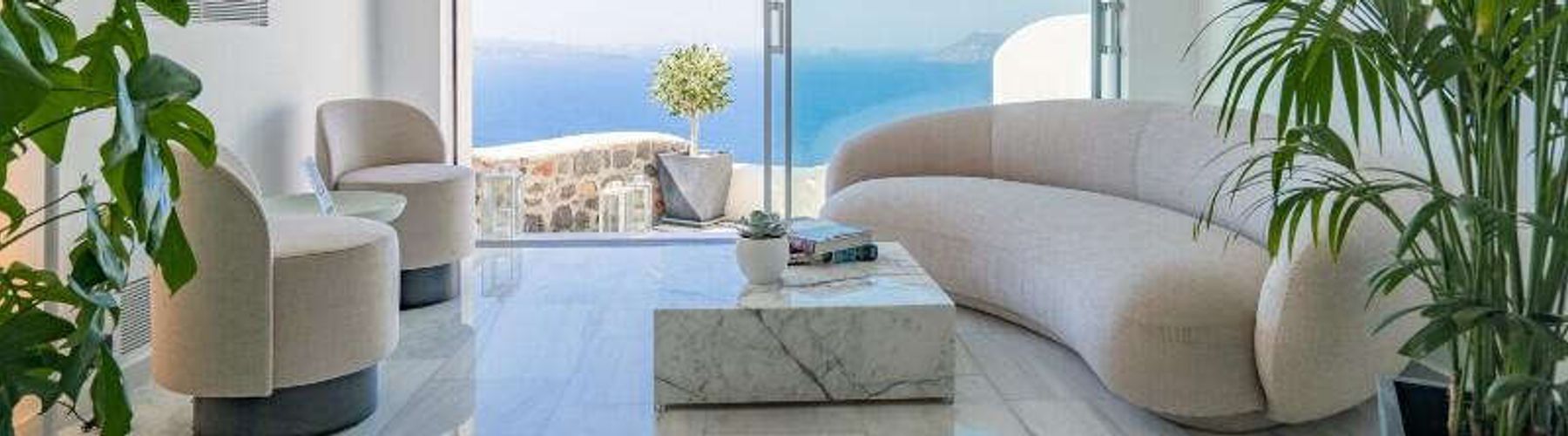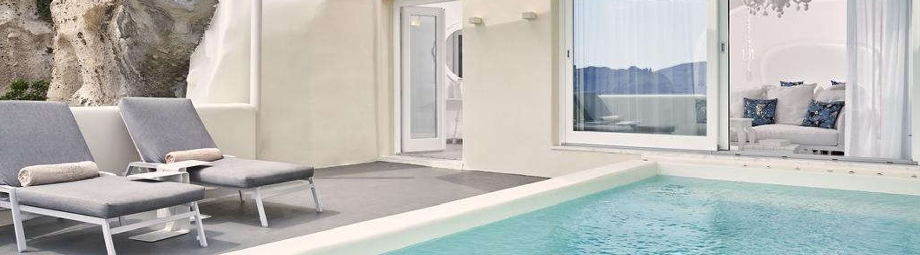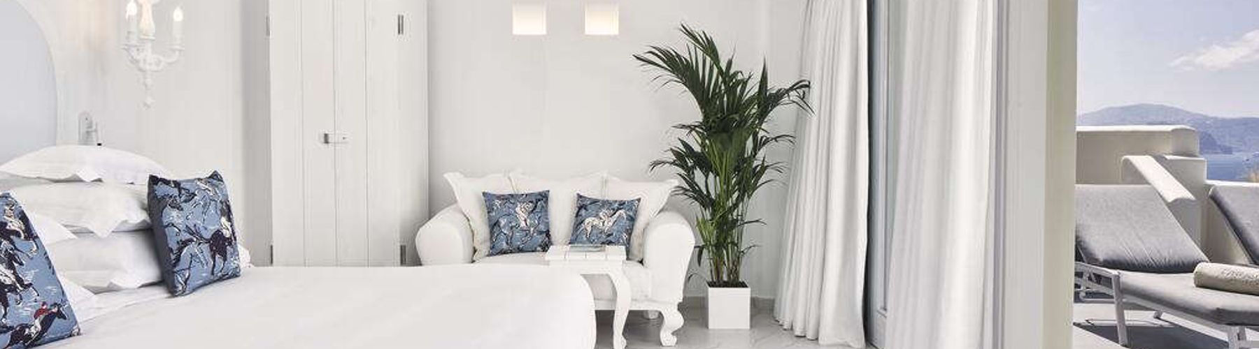 Концепция отеля — естественность в дизайне. Элегантные сьюты и виллы оформлены в минималистичном стиле: белоснежные интерьеры, плавные линии и антикварный декор подчеркивают строгую красоту кикладской архитектуры. Из панорамных окон открываются захватывающие виды на кальдеру и Эгейское море. Во многих номерах есть частные инфинити-бассейны или джакузи.