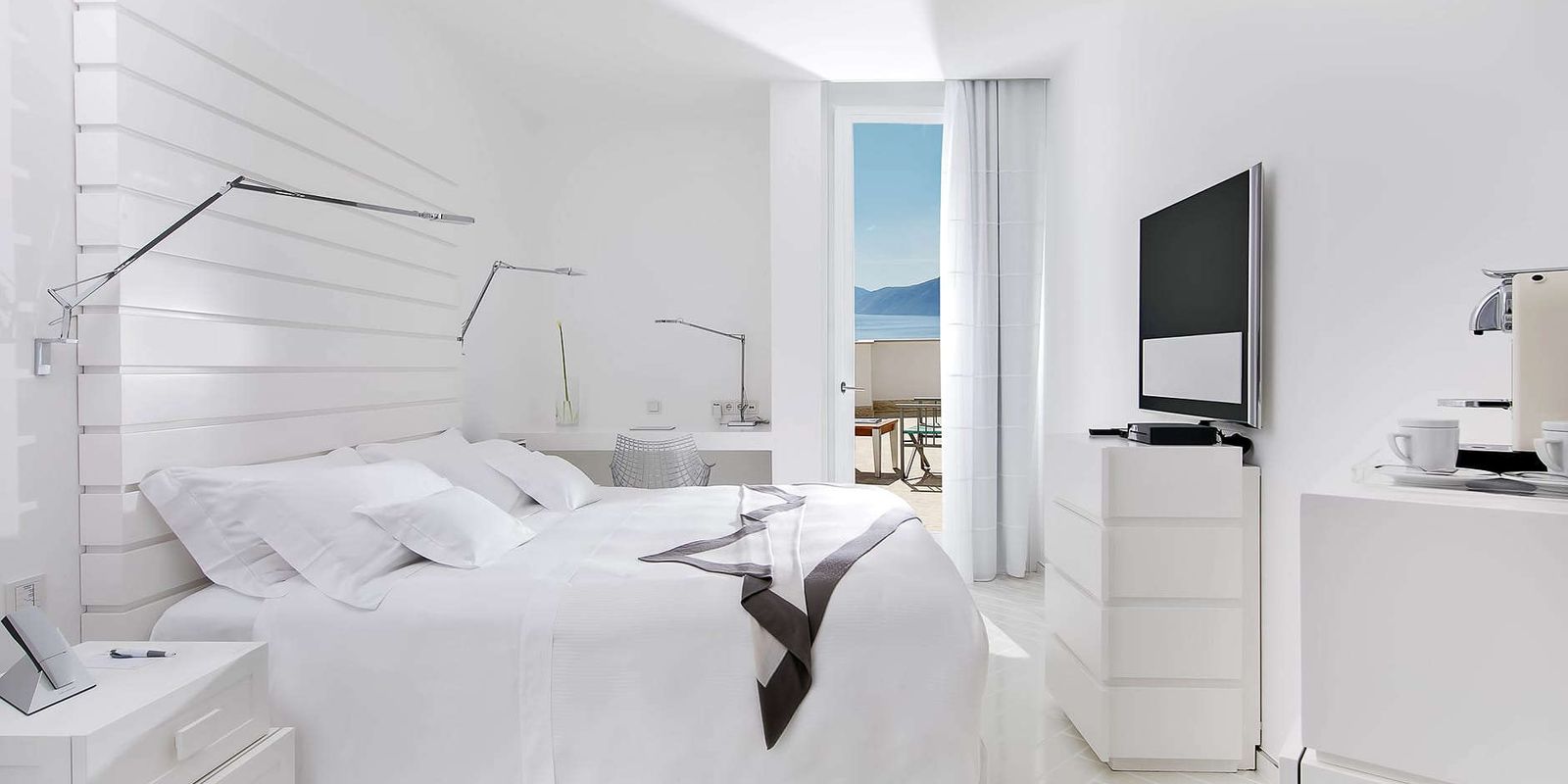 Каждый из 42 его номеров – просторное убежище, где гости могут заново открыть для себя забытые ритмы долгих праздных дней и безмятежных вечеров. В дизайне царит сдержанный шик и палитра всех оттенков белого, подчеркивающая кобальт моря и лазурь неба снаружи, и яркие краски произведений современного искусства – внутри. Всё безукоризненно, начиная с простыней Etro и заканчивая тщательно продуманной трапезой из рыбы утреннего улова и выращенных в саду овощей.