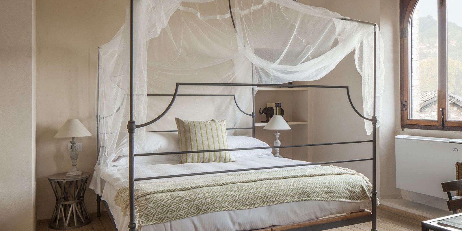 12 эксклюзивных люксов занимают отреставрированные средневековые постройки, включая бывший охотничий домик и торговую лавку. В интерьерах — терракота и местный дуб, антикварная мебель, живописные полотна, камины для прохладных вечеров.