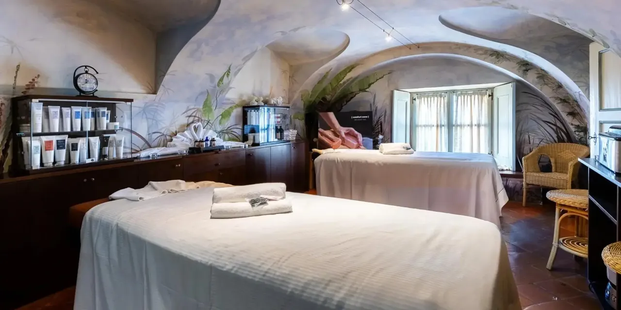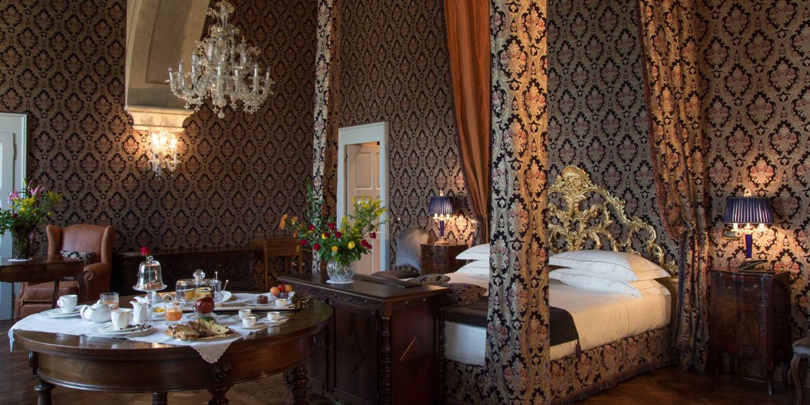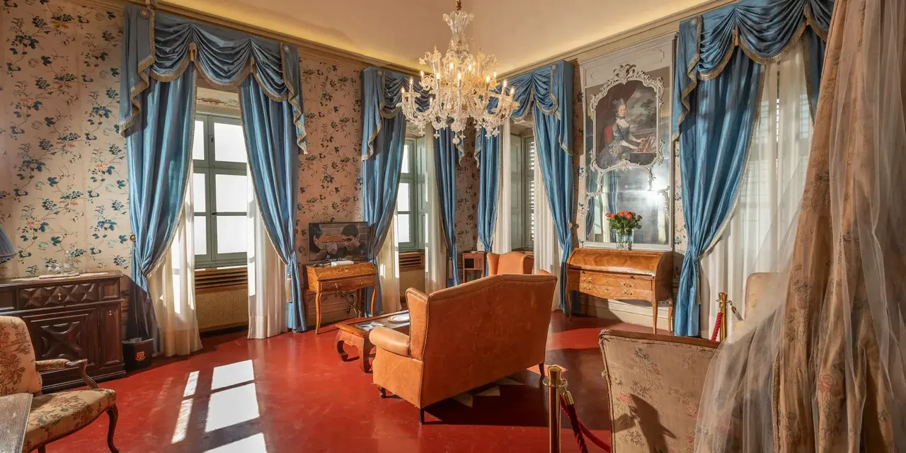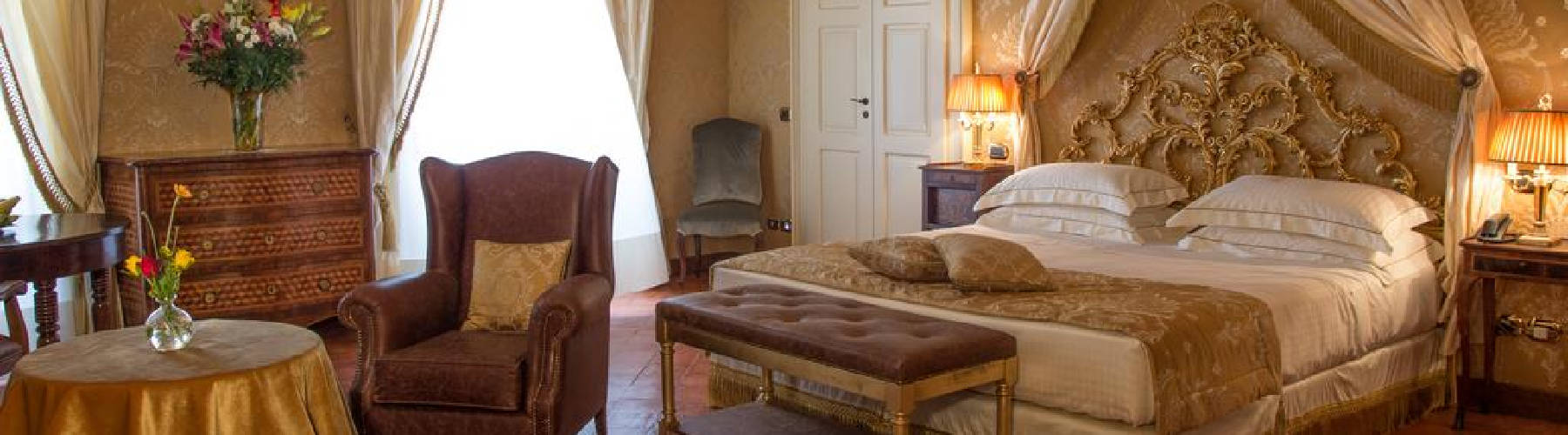 Из окон 12 номеров и люксов открываются виды на долину Ланге и живописные виноградники, а комнаты обставлены антикварной мебелью и украшены уникальными произведениями искусства, что подчеркивает аристократическую атмосферу места.