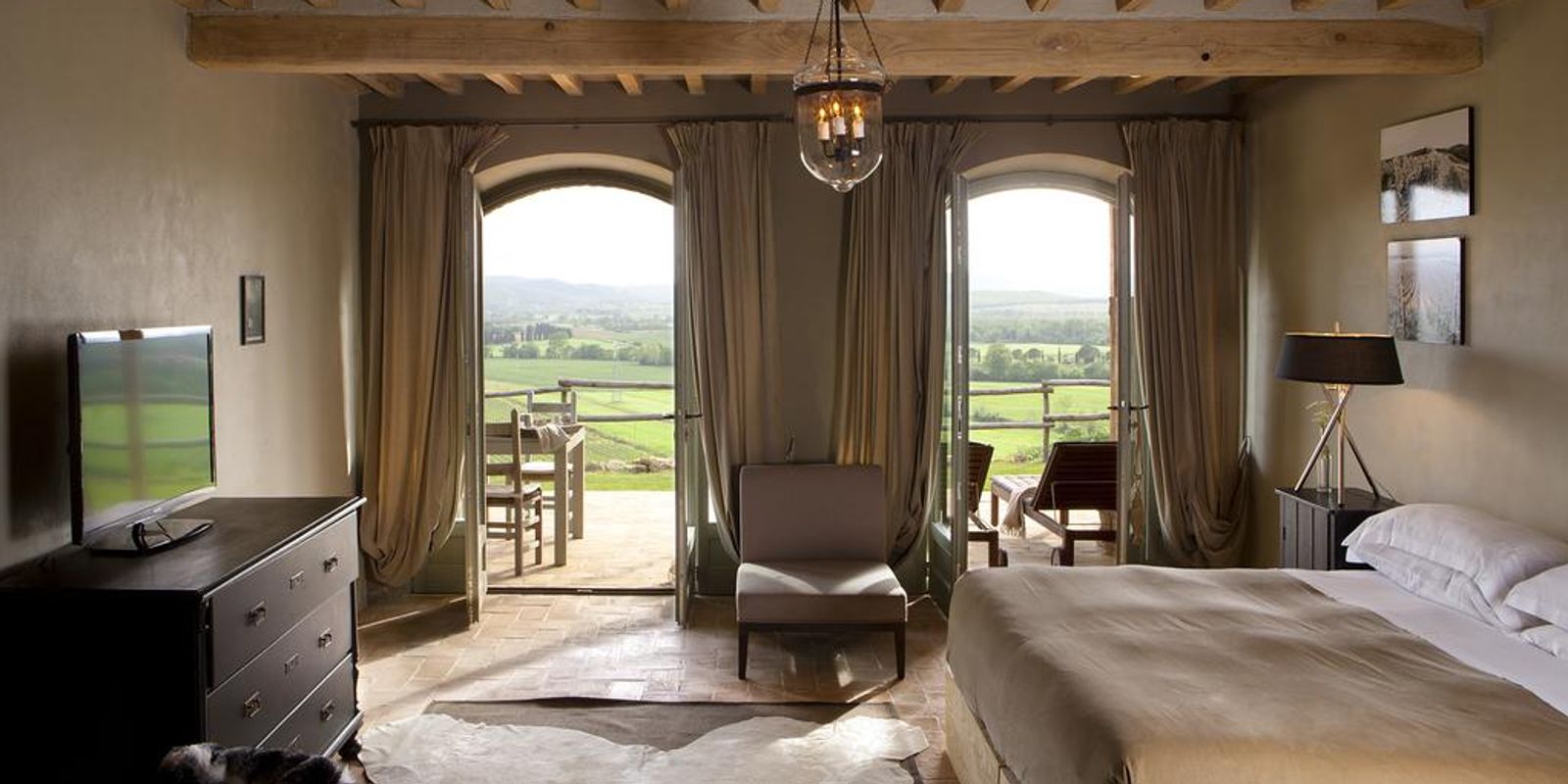 Добротный, любовно отреставрированный фермерский дом сохранил очарование старых добрых времен. К услугам гостей впечатляющие люксы с антикварным крестьянским шиком, наполненные светом дегустационные залы и лучшие виды на устремленные вверх свечи кипарисов, краснеющие среди полей маки и бодрую зелень виноградных лоз.