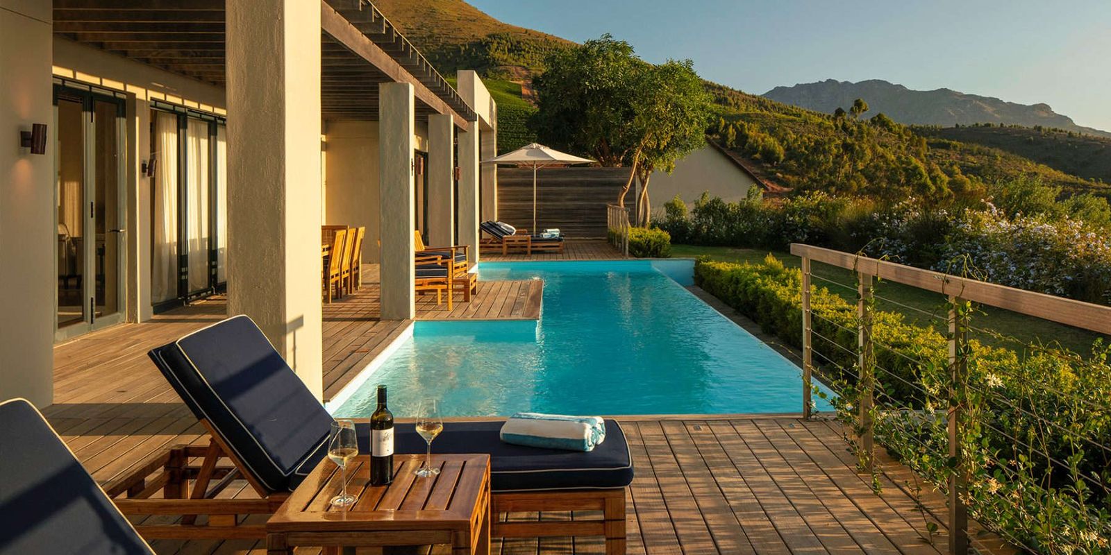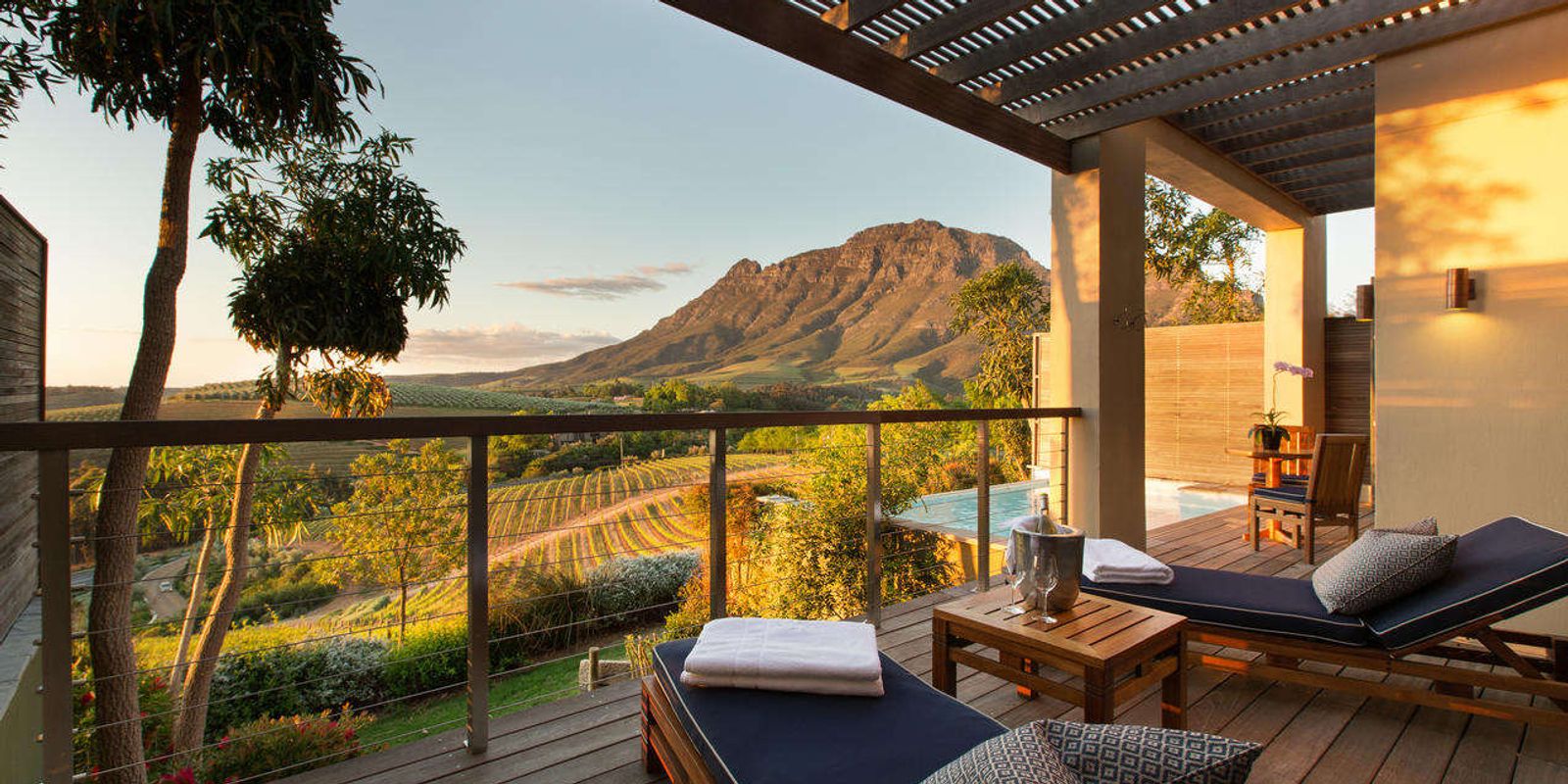 Одна из самых роскошных винных усадеб протянулась вдоль живописного горного перевала Хельхойгт, соединяющего два лучших винодельческих региона страны — Стелленбош и Франшук.