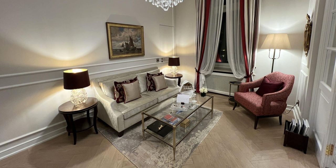 Интерьеры 156 номеров и люксов сочетают исторический элегантный стиль и современный комфорт: в комнатах изысканный текстиль, винтажные люстры, мраморные детали, панели из благородного темного дерева. Многие номера выходят на озеро или сад.