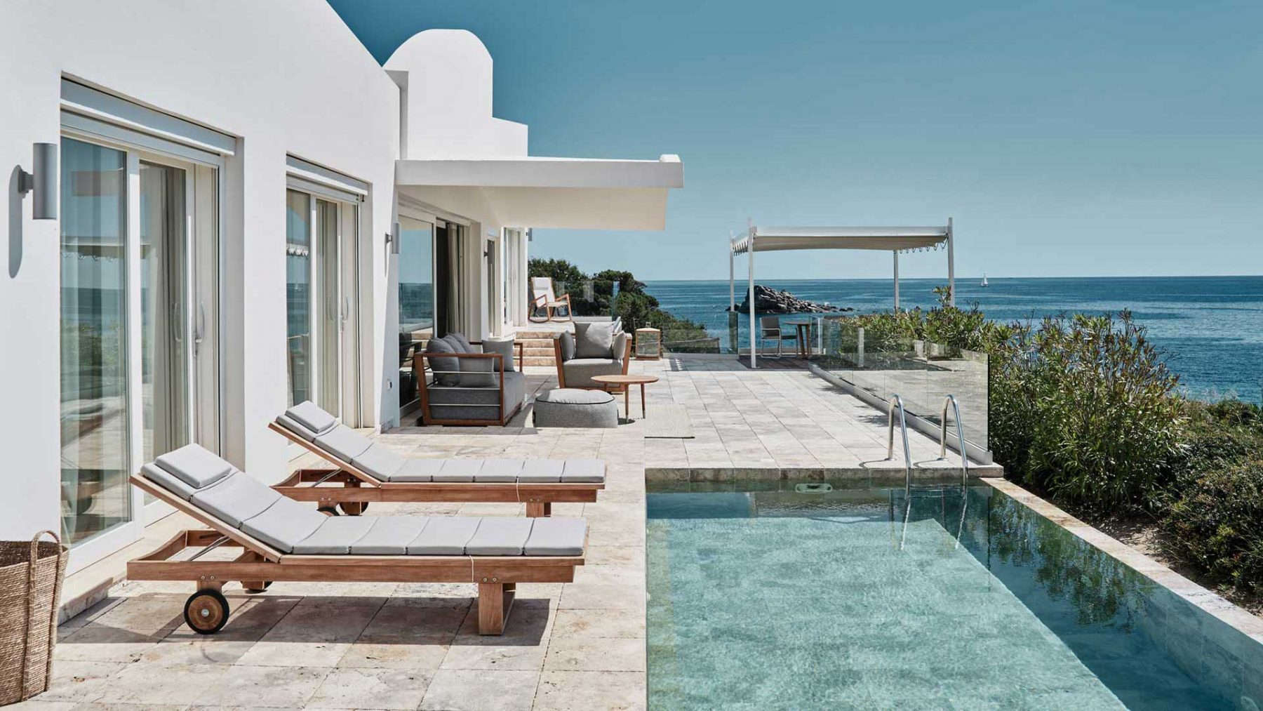 Falkensteiner Resort Capo Boi — райское место в центре природного парка Вилласимиус на юге Сардинии. Курорт окружён зелёными холмами и по праву гордится великолепным частным пляжем с белоснежным песком и кристально чистой водой. Цвет песка и моря — белый и синий — задают тон всем интерьерам, делая все пространства отеля необычайно воздушными.
