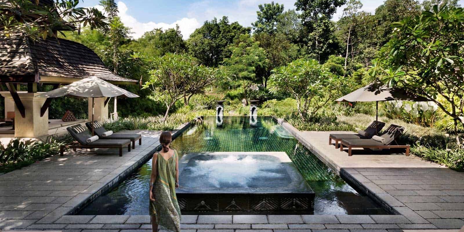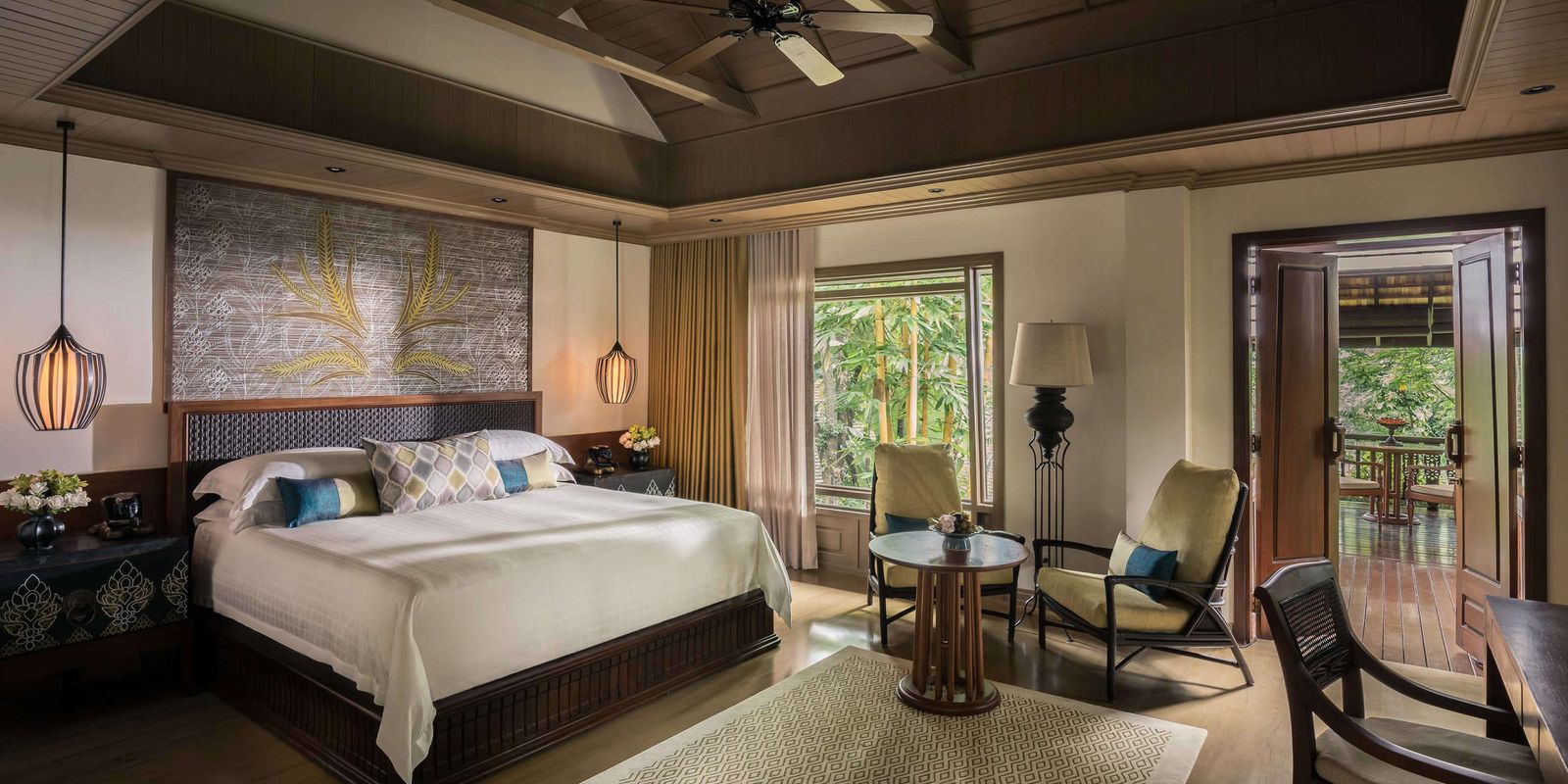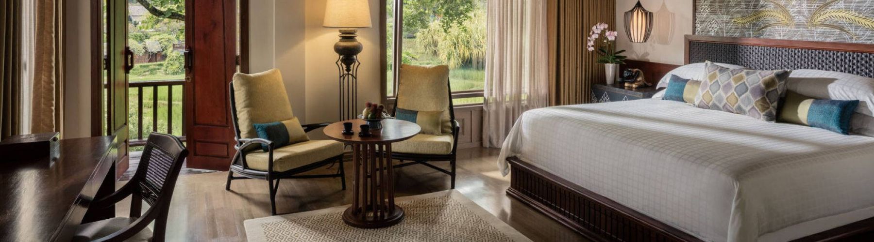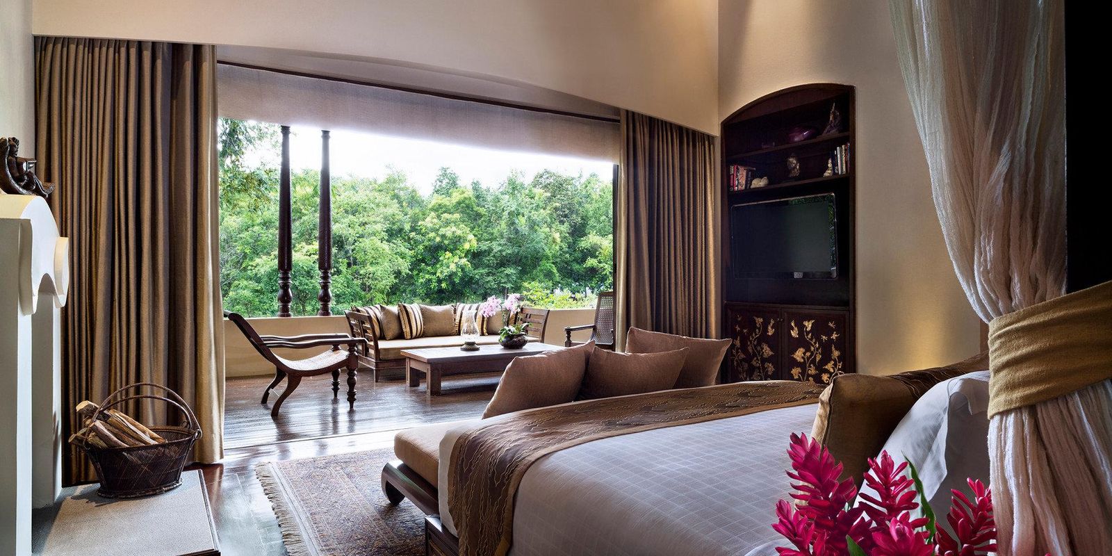 Здесь всего 16 частных резиденций и 64 изящных павильона в стиле древнего Сиама с верандами, глядящими на горный хребет Дой-Сутхеп. В номерах сводчатые потолки и наборные полы из тика, обитая шёлком мебель, антикварные жемчужины.
