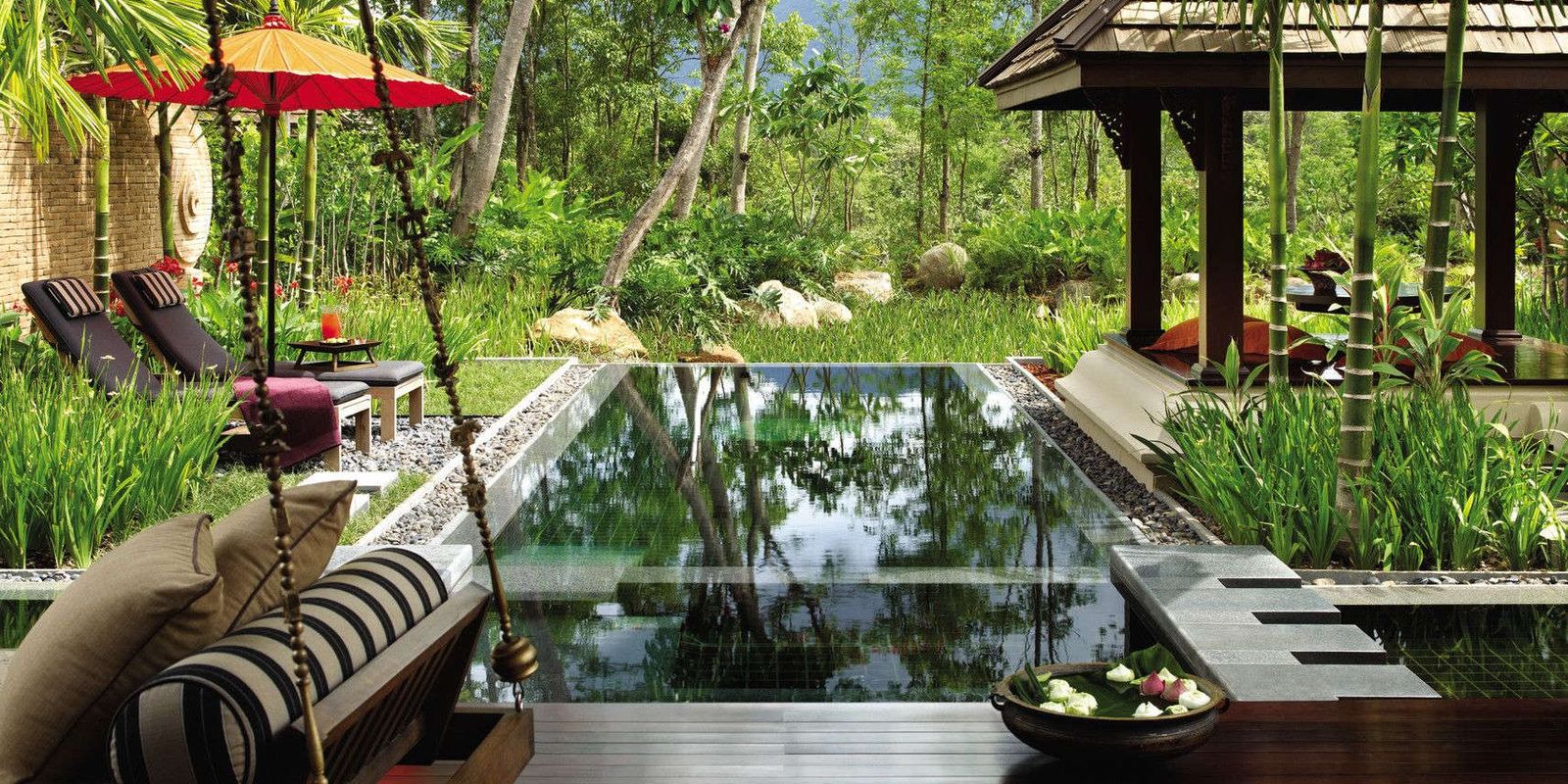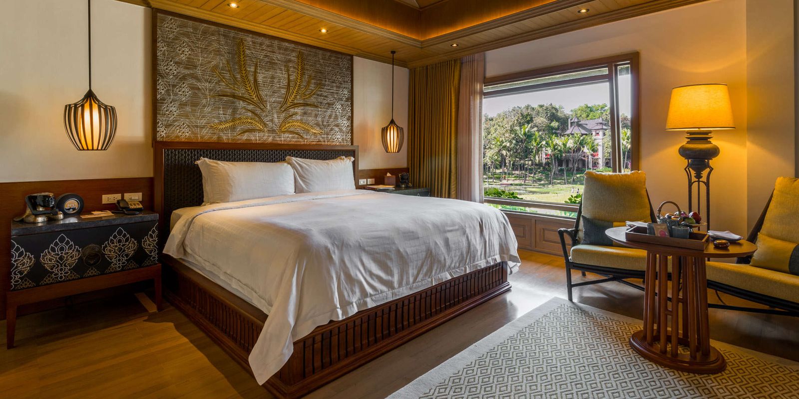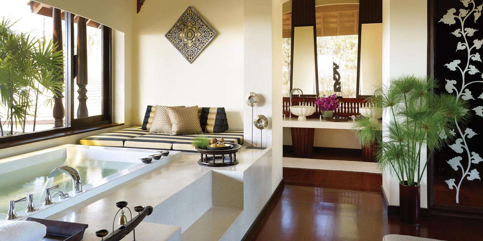 Здесь всего 16 частных резиденций и 64 изящных павильона в стиле древнего Сиама с верандами, глядящими на горный хребет Дой-Сутхеп. В номерах сводчатые потолки и наборные полы из тика, обитая шёлком мебель, антикварные жемчужины.