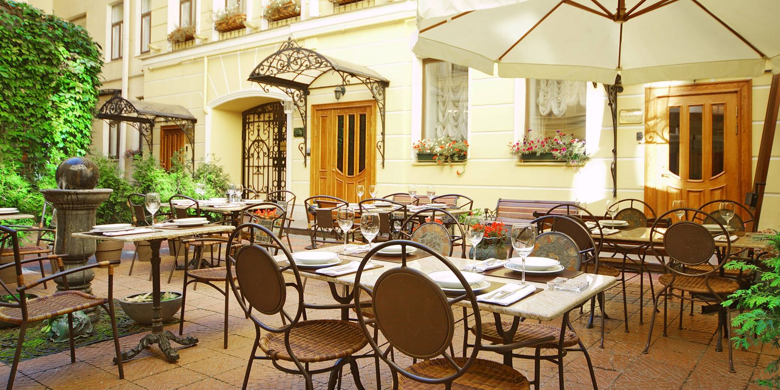 В «Гельвеции» есть красивый внутренний дворик и круглосуточный ресторан «Мариус», где можно позавтракать по системе «шведский стол».