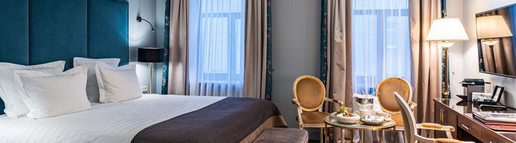 Отель имеет категорию «пять звёзд», уютные номера разного класса: от компакта до представительского люкса. В каждом номере — телевизор, удобная мебель и мини-бар.