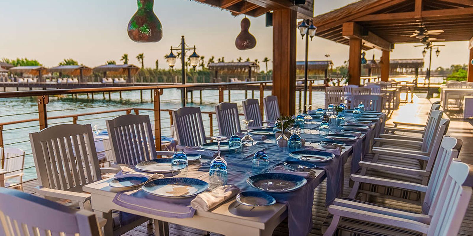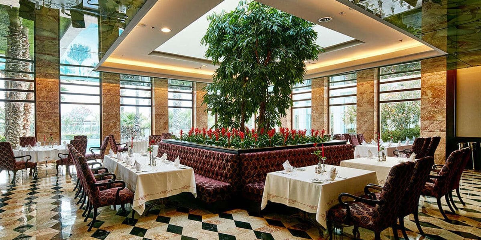 В 11 ресторанах подают блюда французской, итальянской, греческой, японской и турецкой кухонь; работают семь баров, включая два круглосуточных и один пляжный. В Serenity Spa ждут 15 процедурных кабинетов, турецкие хаммамы с VIP-ритуалами, сауны и ледяные комнаты, массажи от балийского до спортивного и витамин-бар.