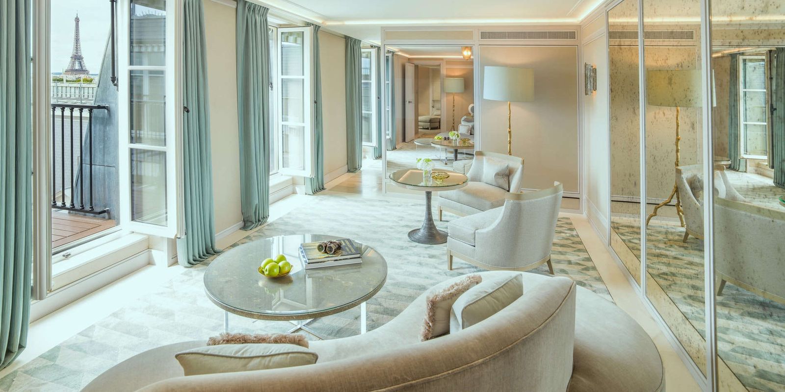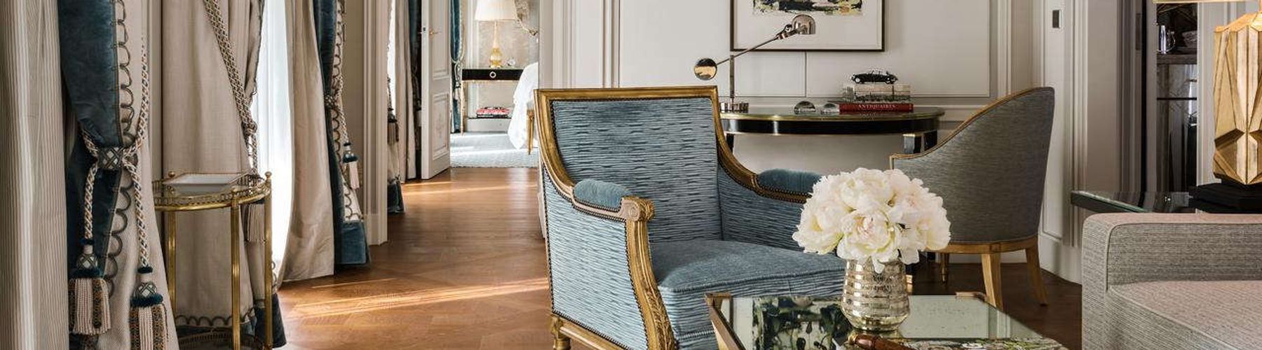 Hôtel de Crillon, A Rosewood Hotel — роскошный дворец на площади Согласия, настоящий символ парижской элегантности. Здание, построенное в XVIII веке, хорошо сохранило дух эпохи Людовика XV. Из номеров на верхних этажах открываются панорамные виды на город, а коллекция произведений искусства дополняет впечатление от пребывания. Недавно отель пережил масштабную реконструкцию с участием легендарного Карла Лагерфельда. Модельер оформил здесь два сьюта — теперь они называются Les Grands Appartements, и стиль маэстро в них хорошо узнаваем.