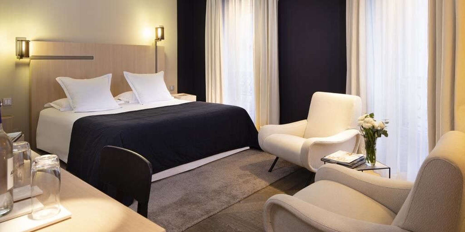К услугам гостей — 33 номера и люкса в лаконичном стиле, некоторые из которых могут похвастаться балконами с видом на парижские крыши, массажная зона с косметическими процедурами на продуктах Nuxe, а также ресторан изысканной французской кухни La Régalade Conservatoire под руководством ведущего шеф-повара Франции Бруно Дусе.