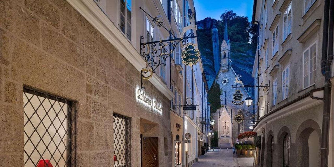 Отель Goldener Hirsch расположен на знаменитой улице Гетрайдегассе в Старом городе Зальцбурга, напротив Фестивального зала и всего в нескольких шагах от дома, где родился Моцарт.