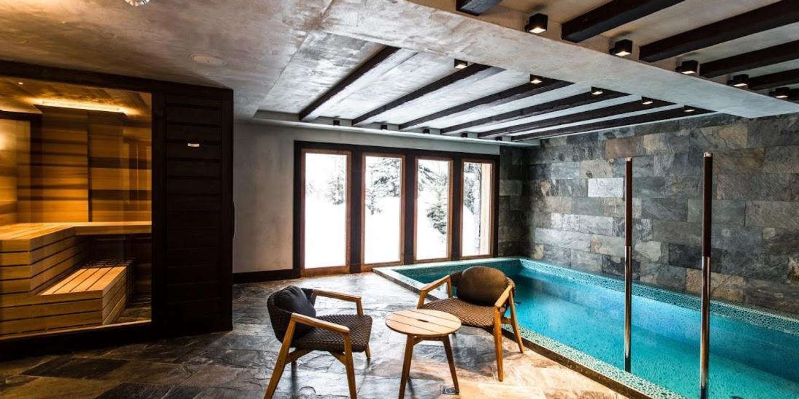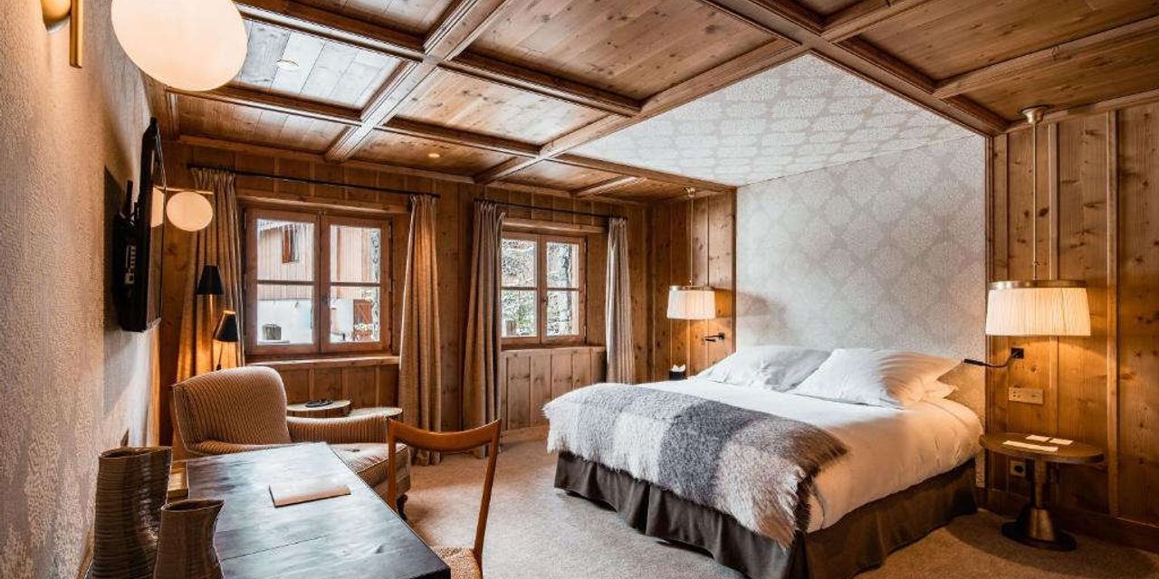 Здесь два вида размещения: шале можно снять целиком или выбрать сьют в главном корпусе. В каждом шале есть свои террасы, камины, кинозалы и спа с бассейном, хаммамом и сауной; гостям предоставляются услуги собственного лыжного консьержа, повара и дворецкого. 8 стильных люксов в главном корпусе — идеальное решение для пар. В интерьерах альпийский уют встречается с классической элегантностью.