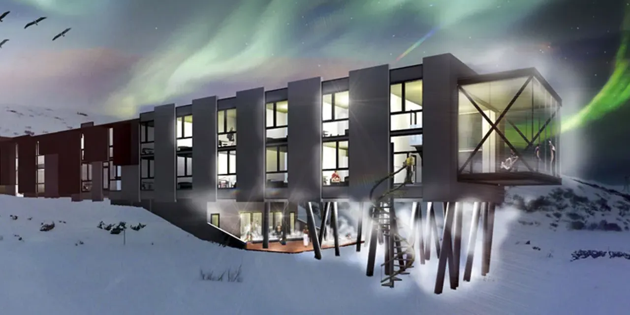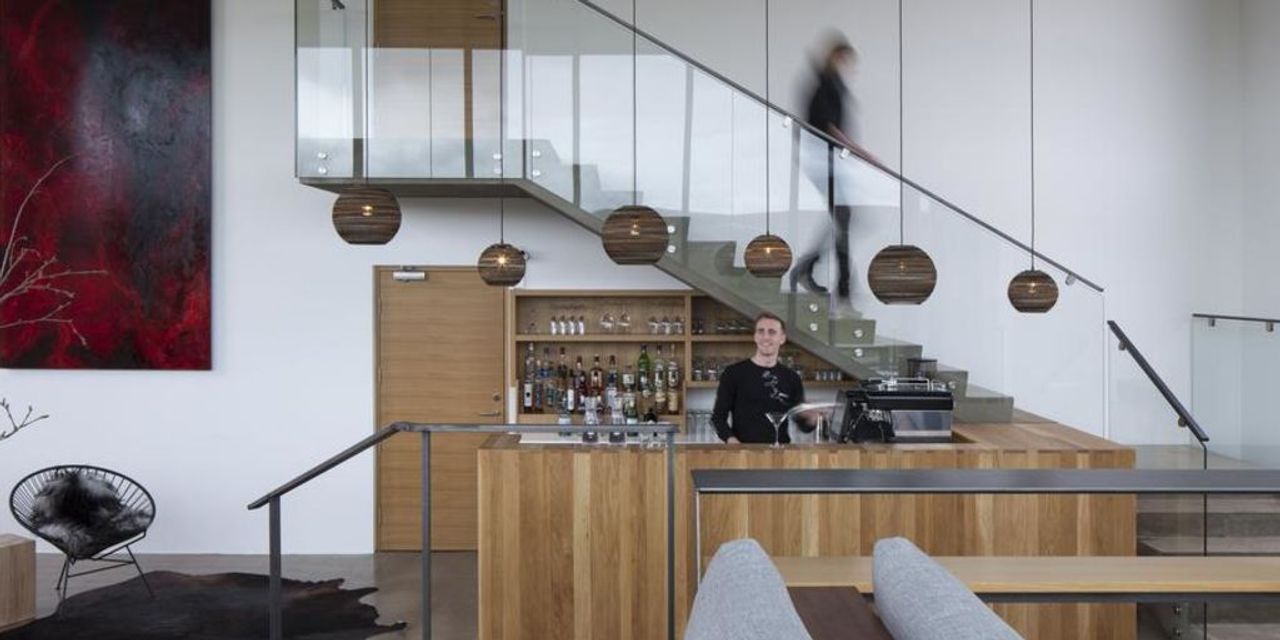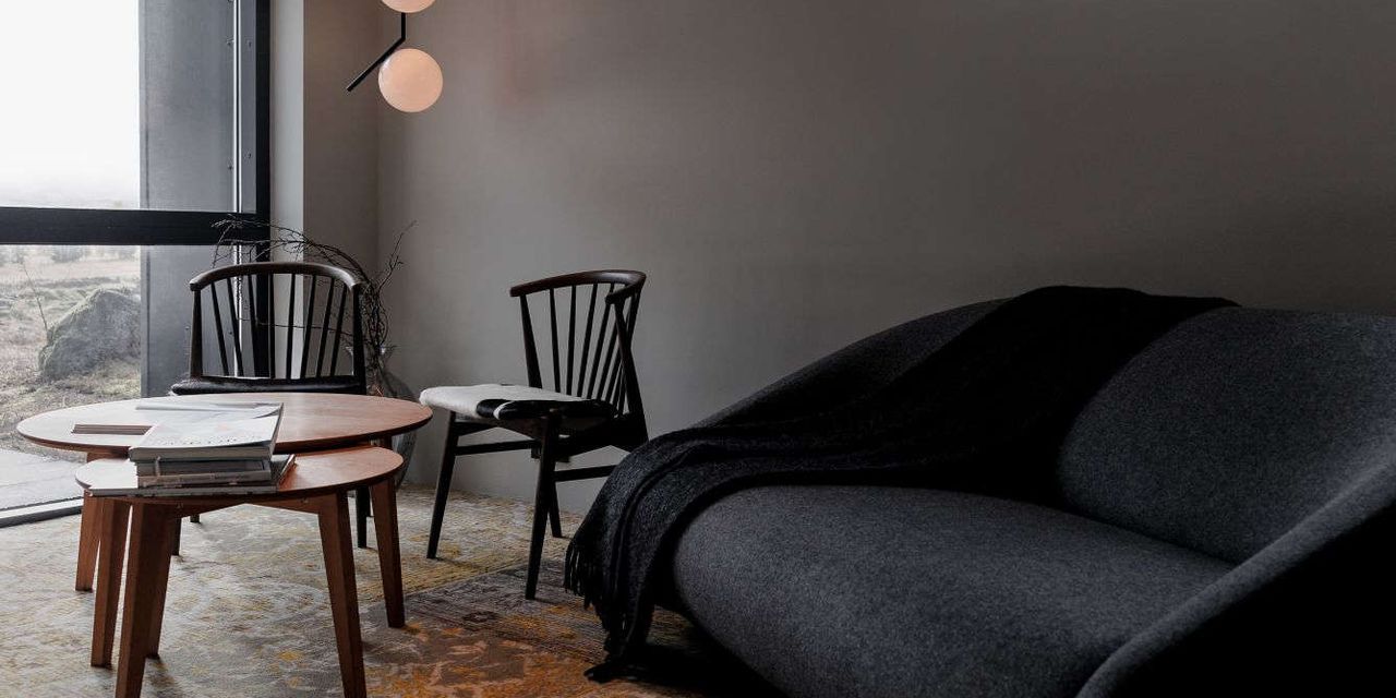 Здание, построенное архитектурной студией Minarc, эффектно интегрировано в окружающий ландшафт: оно частично стоит на колоннах, будто парит над вулканической равниной. Фасад обшит тёмным материалом под цвет лавы, а внутренние помещения выдержаны в минималистичном стиле: бетонные стены, натуральное дерево и большие панорамные окна.