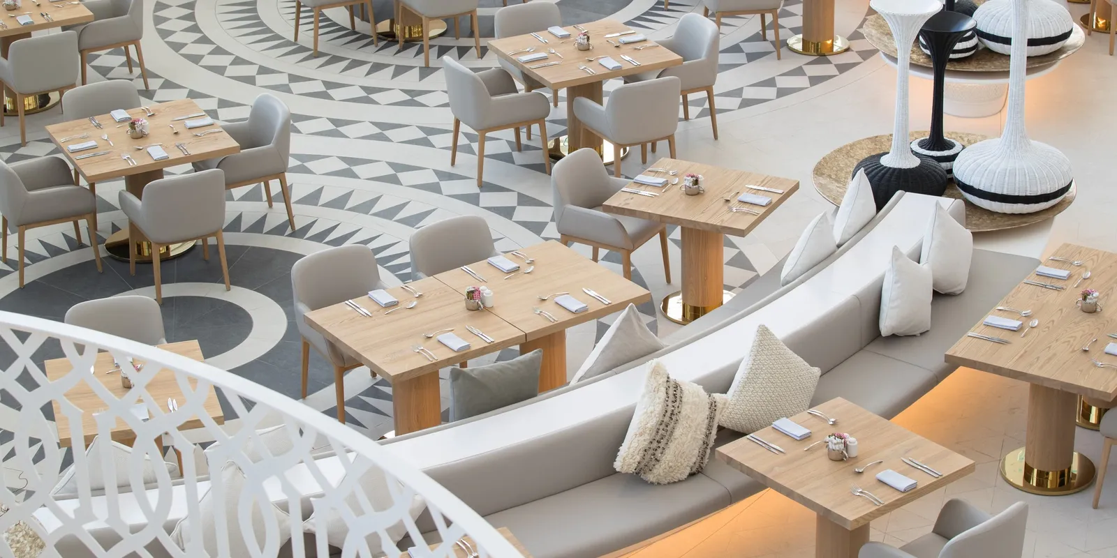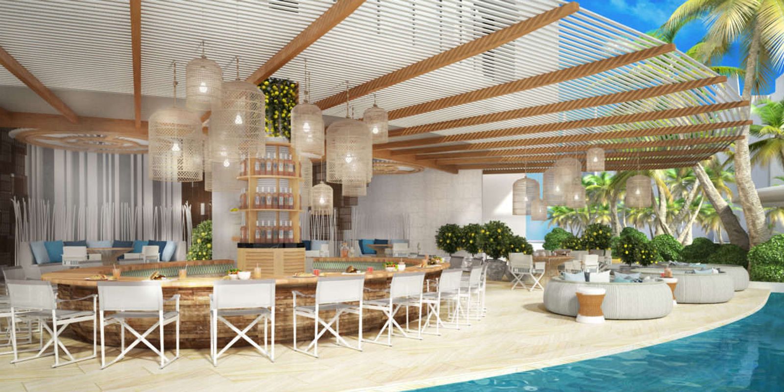 Интерьеры отеля в современном стиле призваны гармонировать с лазурным морем и белым песком пляжа. Особое внимание уделяют маленьким гостям: в отеле организуют досуг для детей любого возраста — от развлечений на пляже до киновечеров.