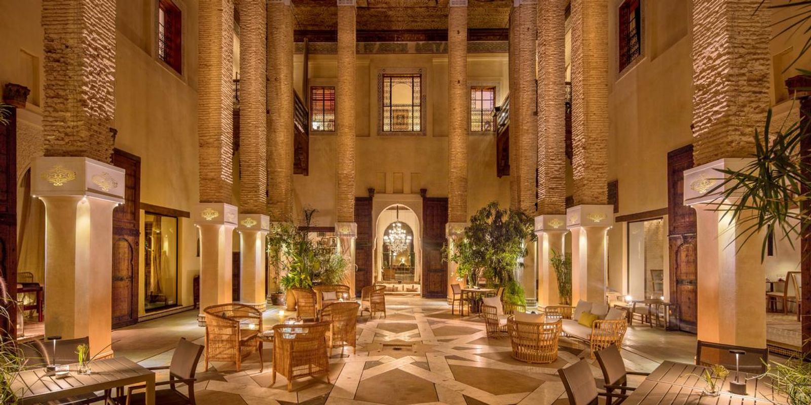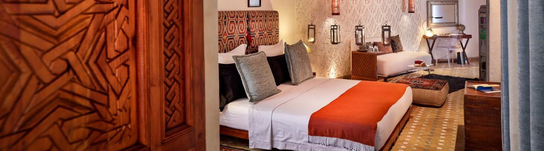 Karawan Riad — роскошный отель в медине Феса. Он занимает дворец-риад XVII века, тщательно восстановленный с использованием традиционных марокканских материалов. Восточная романтика витает всюду: в традиционных двориках с фонтанами, в тенистых садах, в сводчатых окнах и галереях с колоннами, в интерьерах номеров с декором от местных мастеров. Вы найдёте мозаики в стиле зеллидж, изящные кованые изделия, ручную шёлковую вышивку и сотни других деталей, переносящих в древнюю сказку.