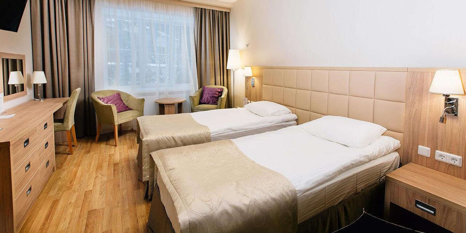 Разнообразие вариантов размещения: номера и люксы 10 категорий, от апартаментов с террасой и комнатой для процедур до удобных «синглов».