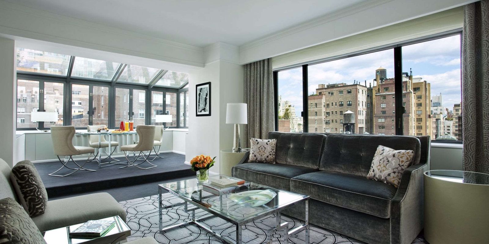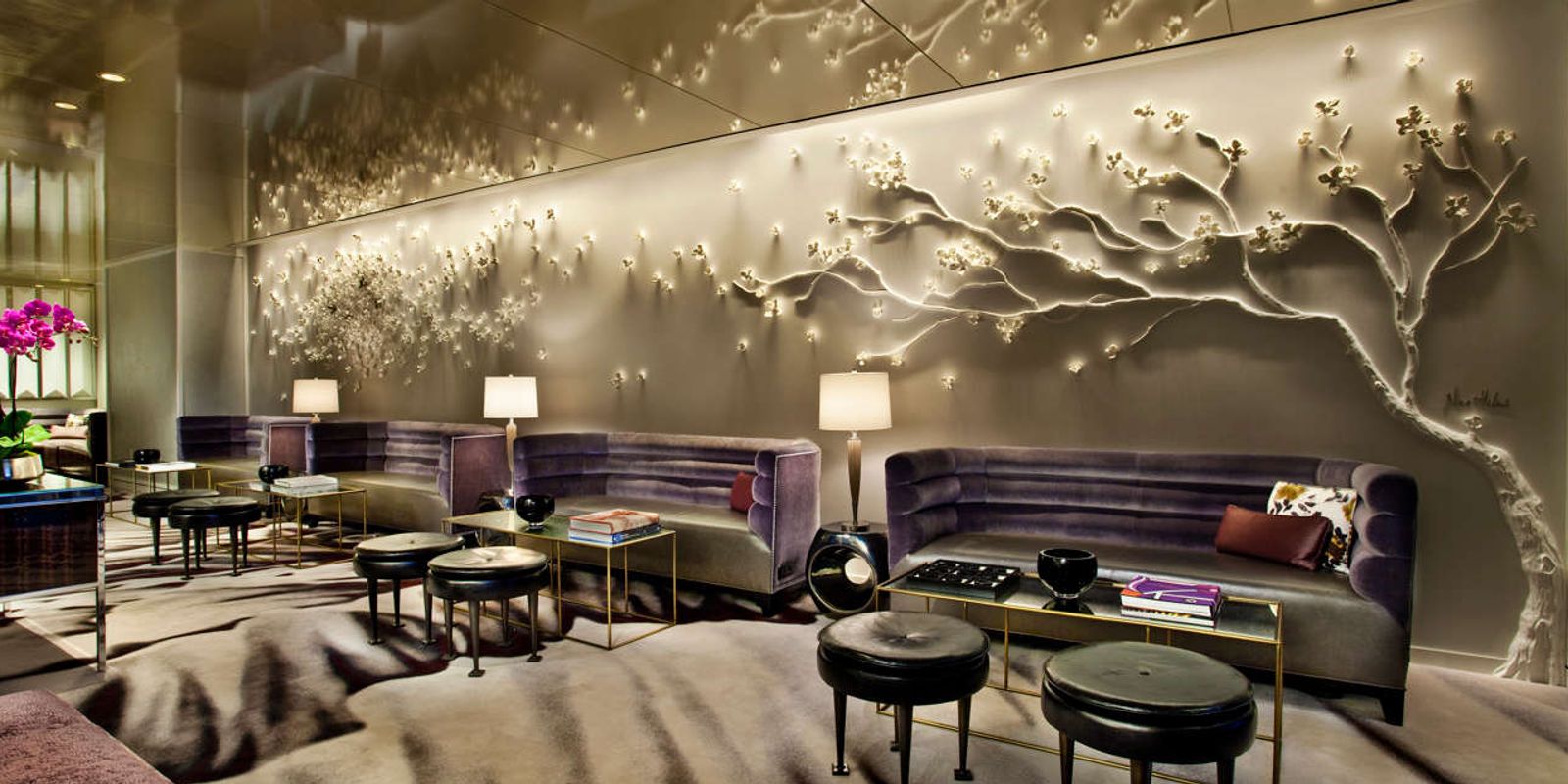 Уже более пятидесяти лет для многих путешественников Нью-Йорк начинается с роскошного холла Loews Regency New York Hotel, оформленного в стиле ар-деко, с его лиловыми диванами и причудливым серебристым деревом во всю стену, будто бы роняющим вишневые лепестки под порывом ветра.