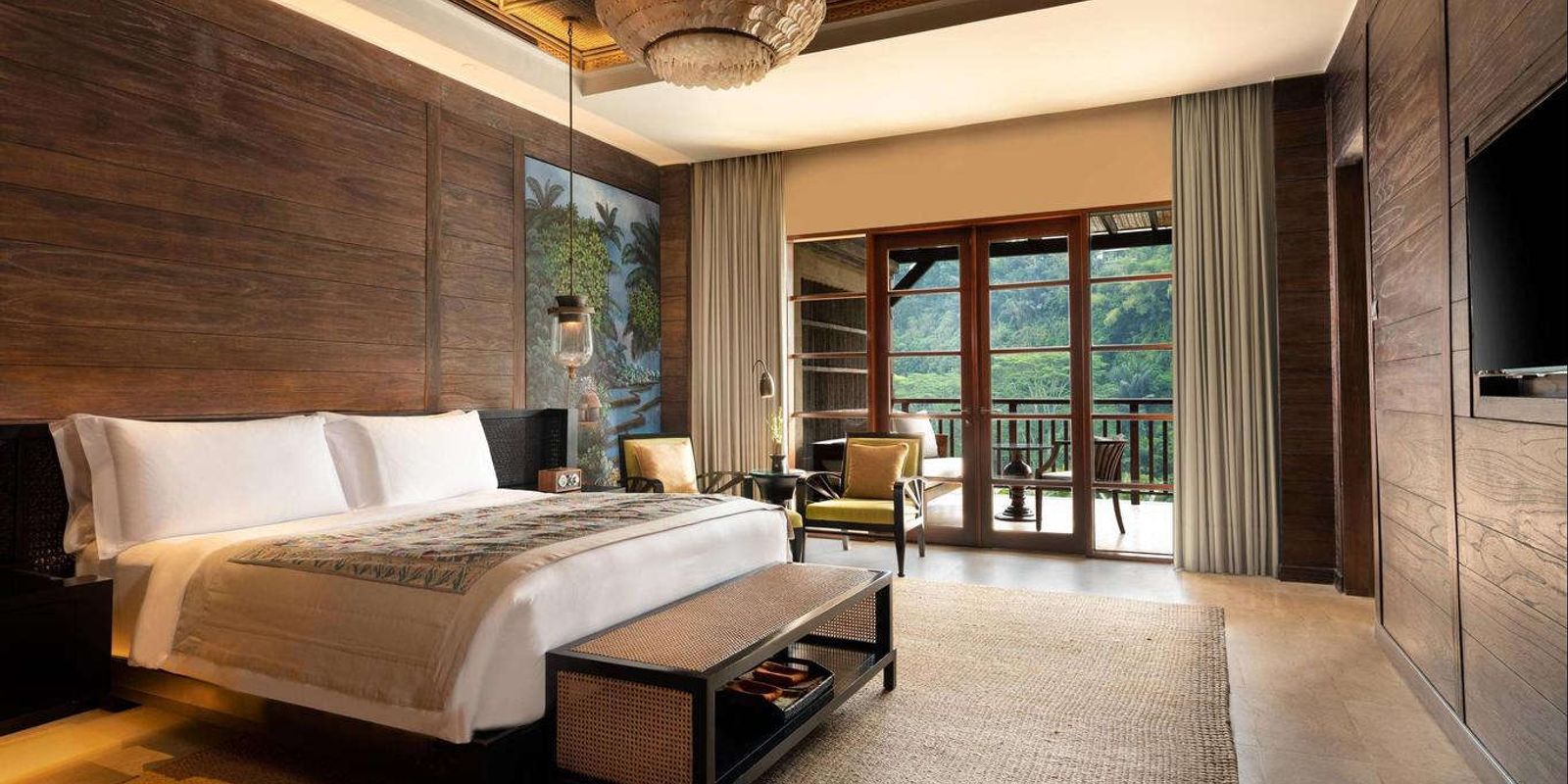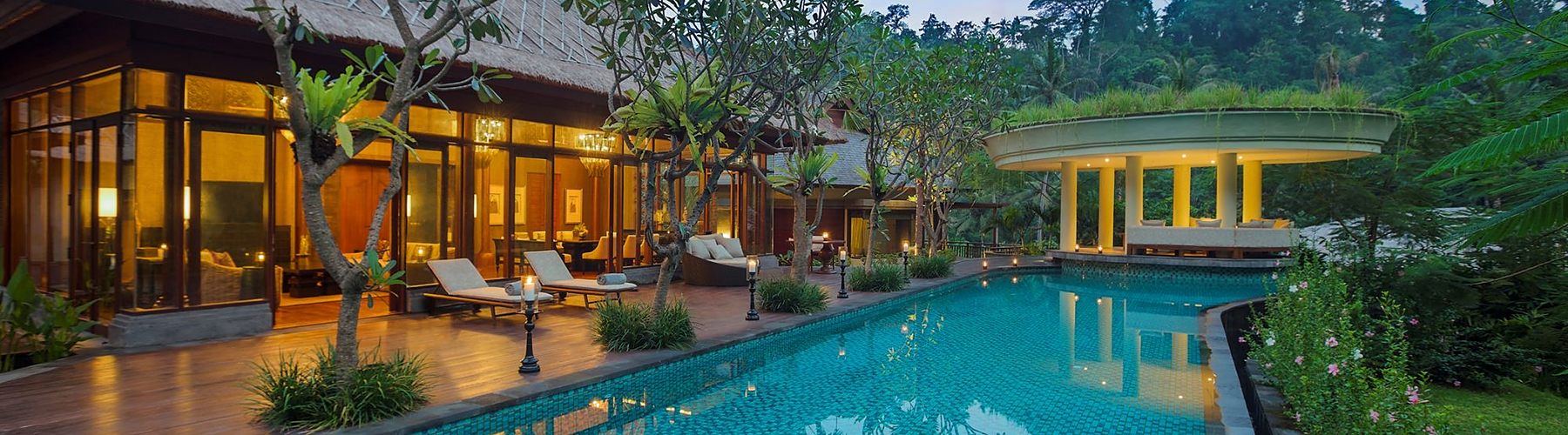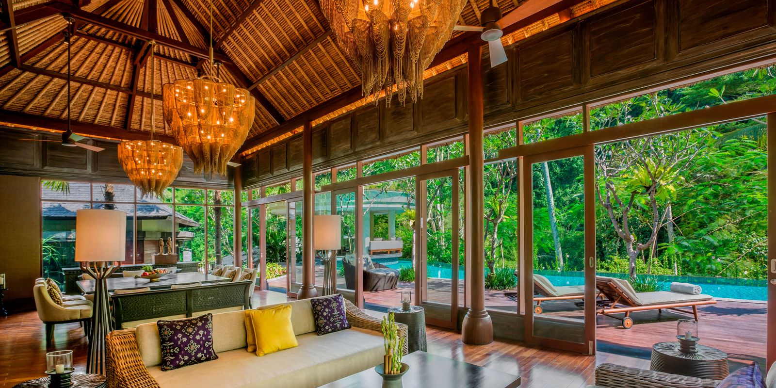 Mandapa, a Ritz-Carlton Reserve, расположен в долине реки Аюнг, рядом с Убудом — культурным и духовным центром Бали. Название курорта переводится с санскрита как «храм», что полностью отражает его концепцию. Архитектура повторяет традиционную балийскую деревню: бунгало в стиле храмов, крытые соломой павильоны, тропические сады и тишина, нарушаемая лишь звуками природы. По прибытии гостей встречает звон балийского гонга — ритуал, символизирующий момент пробуждения.