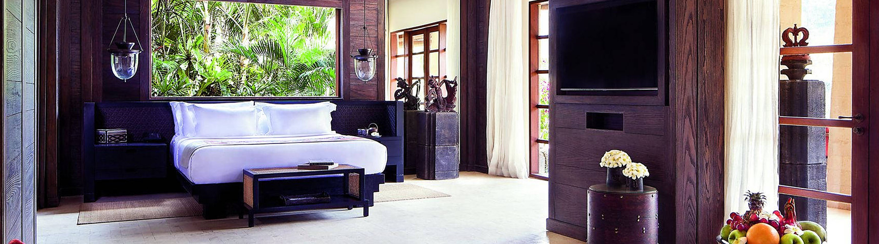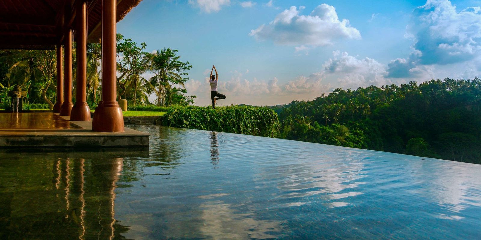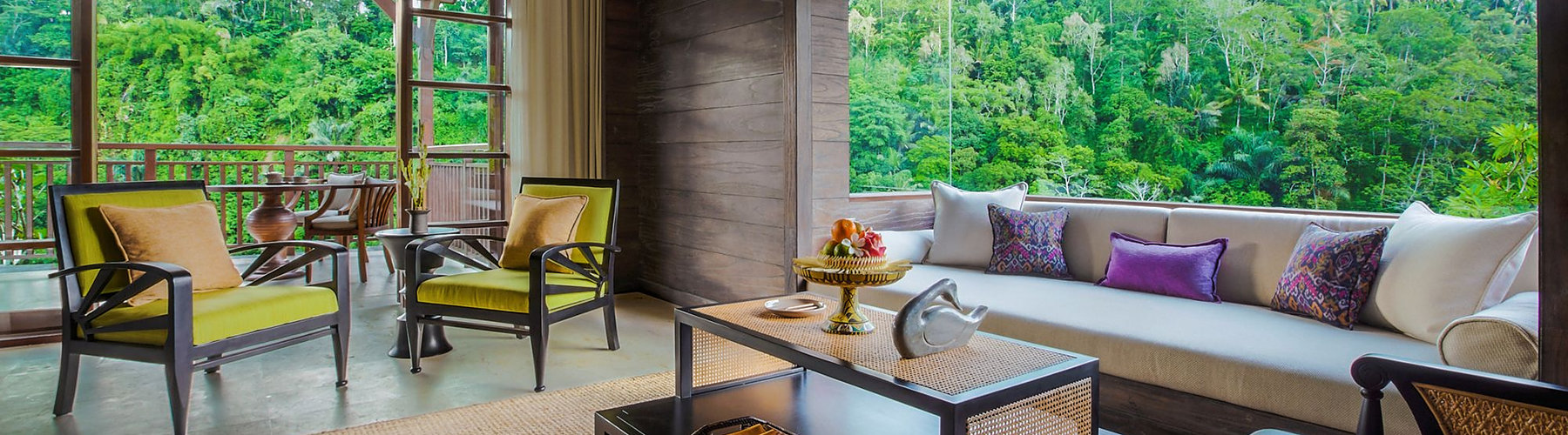 Mandapa, a Ritz-Carlton Reserve, расположен в долине реки Аюнг, рядом с Убудом — культурным и духовным центром Бали. Название курорта переводится с санскрита как «храм», что полностью отражает его концепцию. Архитектура повторяет традиционную балийскую деревню: бунгало в стиле храмов, крытые соломой павильоны, тропические сады и тишина, нарушаемая лишь звуками природы. По прибытии гостей встречает звон балийского гонга — ритуал, символизирующий момент пробуждения.