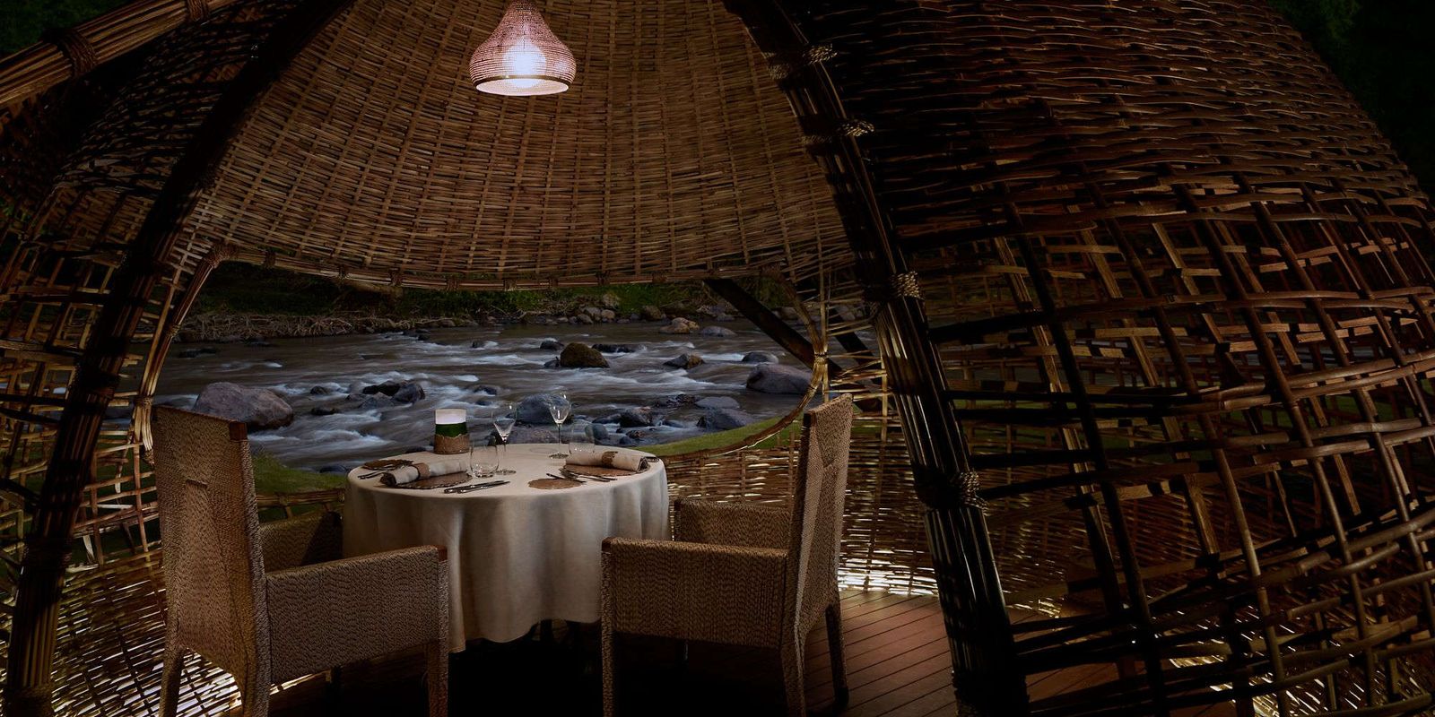 Ресторан Kubu предлагает блюда средиземноморской кухни в индивидуальных бамбуковых капсулах на берегу реки, а в Sawah Terrace делают ставку на локальные продукты и балийские рецепты. В спа-центре проводят традиционные церемонии очищения, массажи с целебными травами и ванны с кокосовым молоком. Гости могут отправиться в ретро-тур на винтажном Volkswagen по деревням и рисовым полям, заняться йогой среди джунглей или оставить детей в The Green Camp — образовательной программе, посвящённой природе и культуре острова.