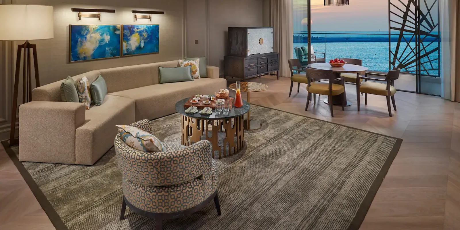 Mandarin Oriental Jumeira, Dubai — городской курорт, расположенный на первой береговой линии с видом на Персидский залив. Интерьеры 256 номеров и сьютов разрабатывал дизайнер Джеффри Уилкс. Концептуальный стиль сочетает современный западный минимализм и восточные мотивы, воплощая мультикультурный дух Дубая.