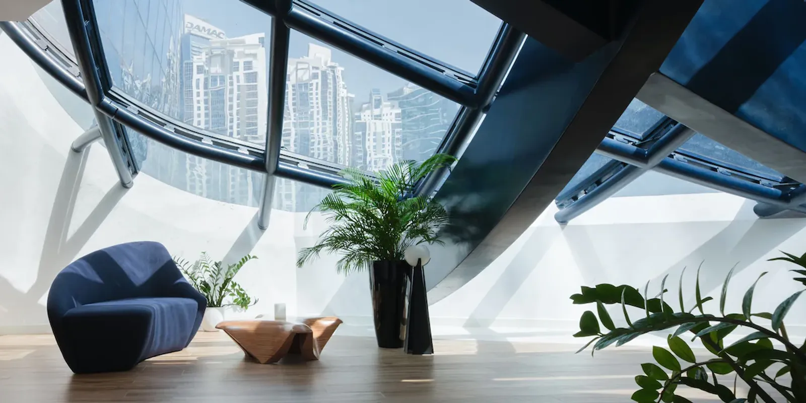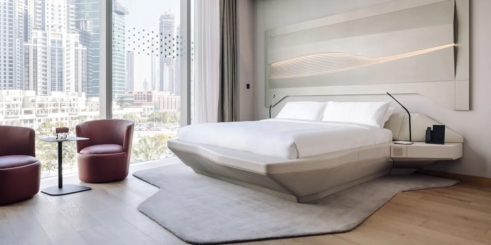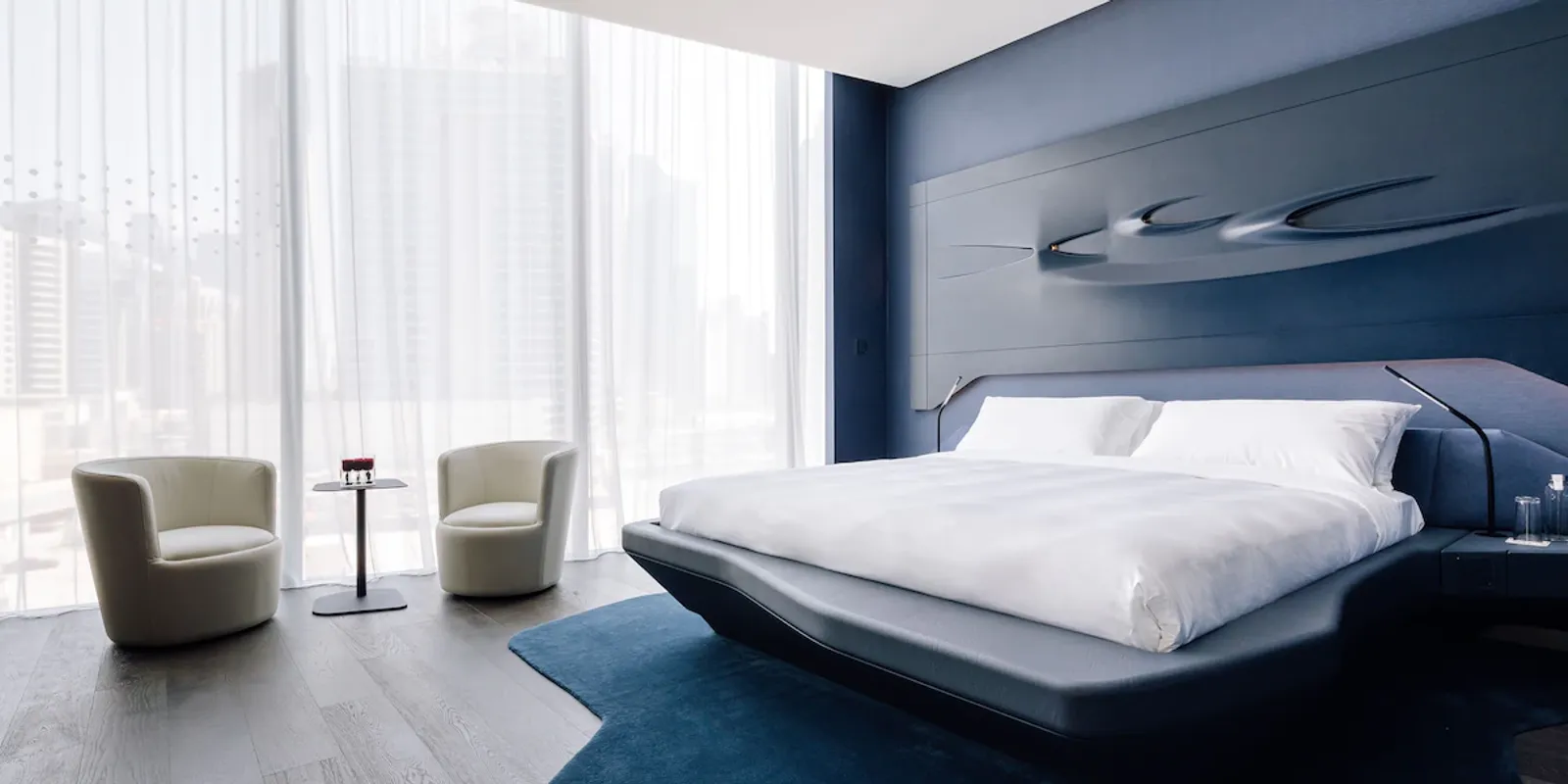 Концепция отеля: амбициозная приверженность устойчивому развитию, искусству и культуре, сочетающая в себе технологии, индивидуальность и образ жизни уникального направления. В номерах отеля есть две совершенно разные темы, которые играют с сенсорными связями: одна более авангардная и космополитичная, вдохновленная ночными пейзажами города; другая более теплая и атмосферная, напоминающая обширную пустыню вокруг Дубая.