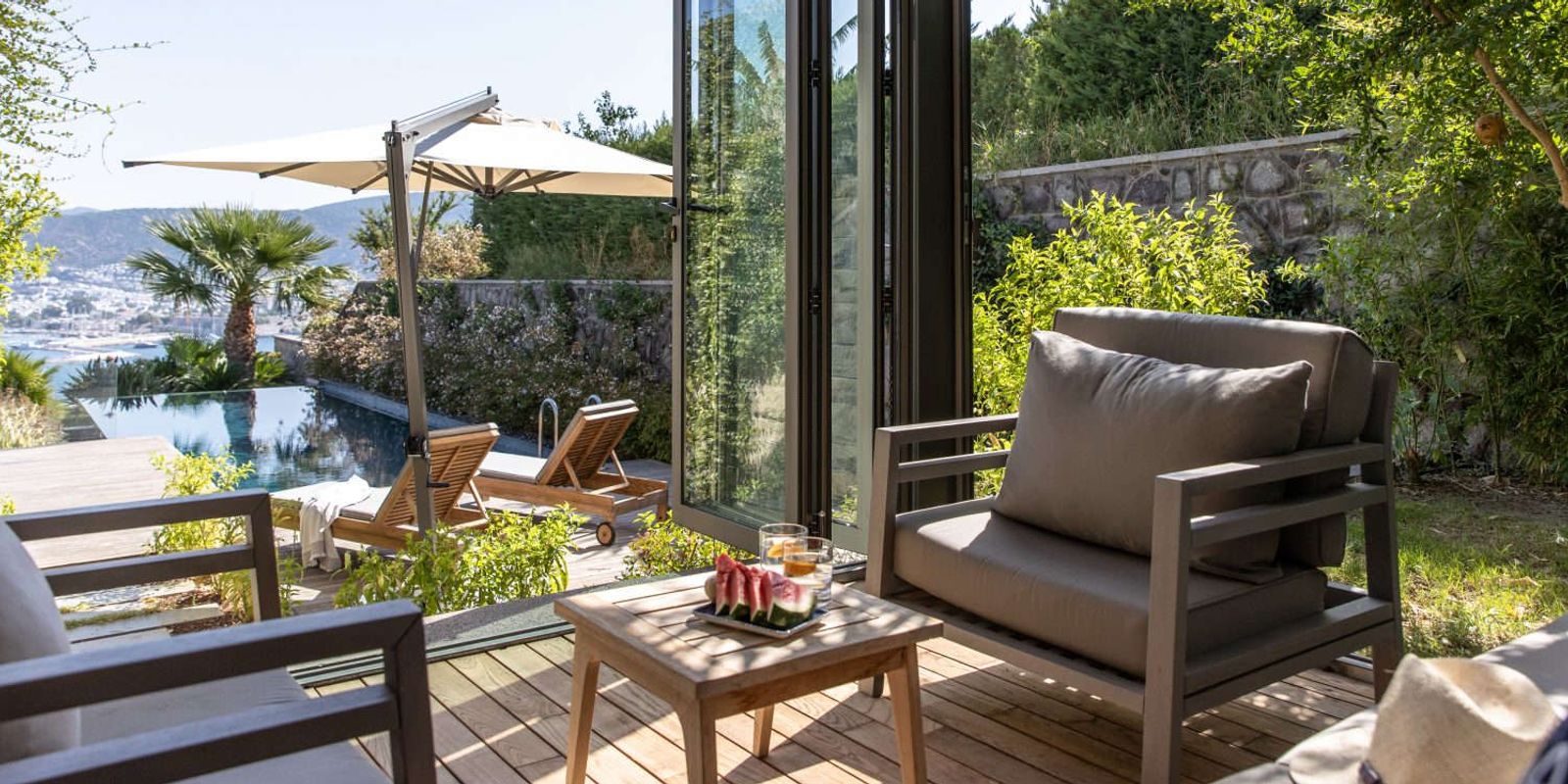 Здесь 72 элегантных номера, 31 роскошный люкс, стильные лофты и великолепные виллы с собственным бассейном и садом. Во всех номерах — террасы с видом на море или сад.