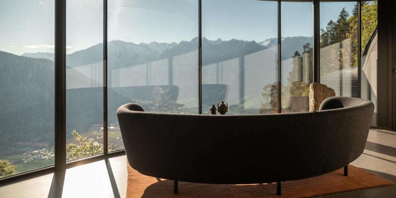Онсэн-бассейн в японском стиле расположен высоко над Мерано и сочетает в себе древнюю целебную силу японского купания и альпийского отдыха, а лесная сауна сделана из древесины черного болиголова и парит на высоте 20 метров над заснеженной землей.