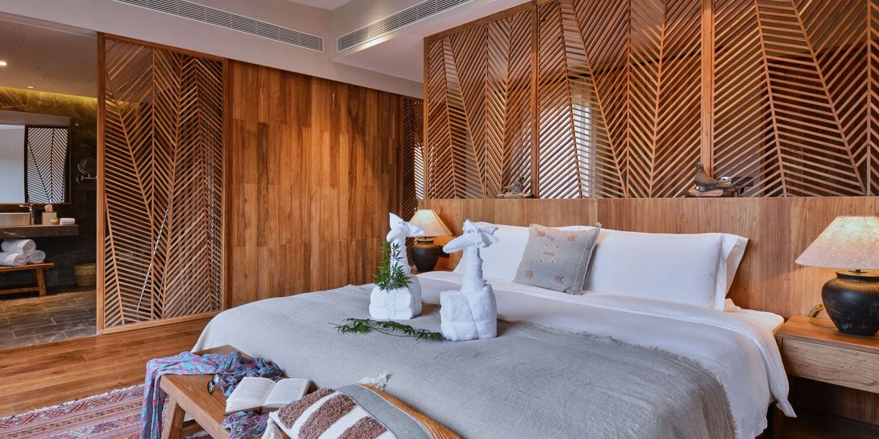 В отделке номеров использованы только местные материалы, а изделия нанкинских ремесленников удачно вписаны в лаконичные интерьеры. Обособленные виллы с собственными бассейнами, садами и террасами спроектированы так, чтобы обеспечить приятное уединение.