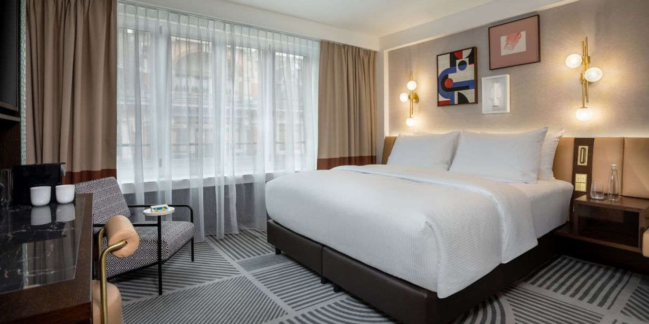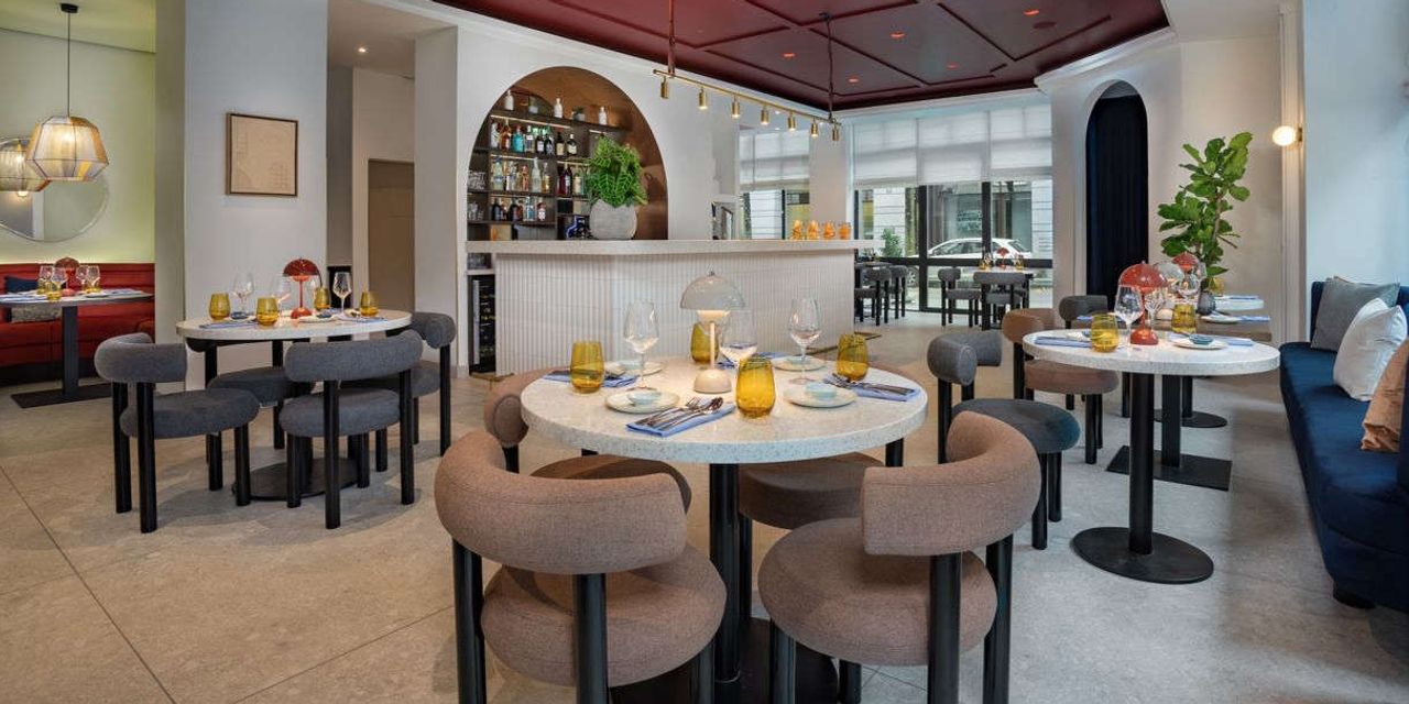 В отеле гостям накрывают богатые завтраки: по выходным они длятся до 11:00. В обед здесь подают сытный ланч, объединяющий лучшие блюда мировой кухни: луковый суп с запечённым грюйером, ньокки из тыквы с трюфелем, куриную грудку гриль с романеско и соусом из тимьяна, стейк из тунца с майонезом кимчи.
