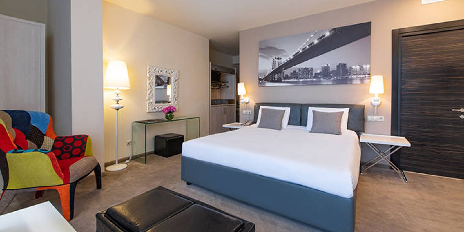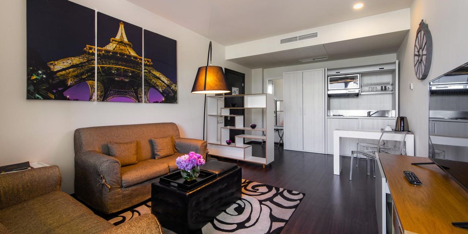 В номерах имеется кондиционер, гостиный уголок, сейф для ноутбука и спутниковый ЖК-телевизор. Ванная комната укомплектована феном, халатами и тапочками. Мини-кухня оснащена холодильником, плитой и электрочайником.