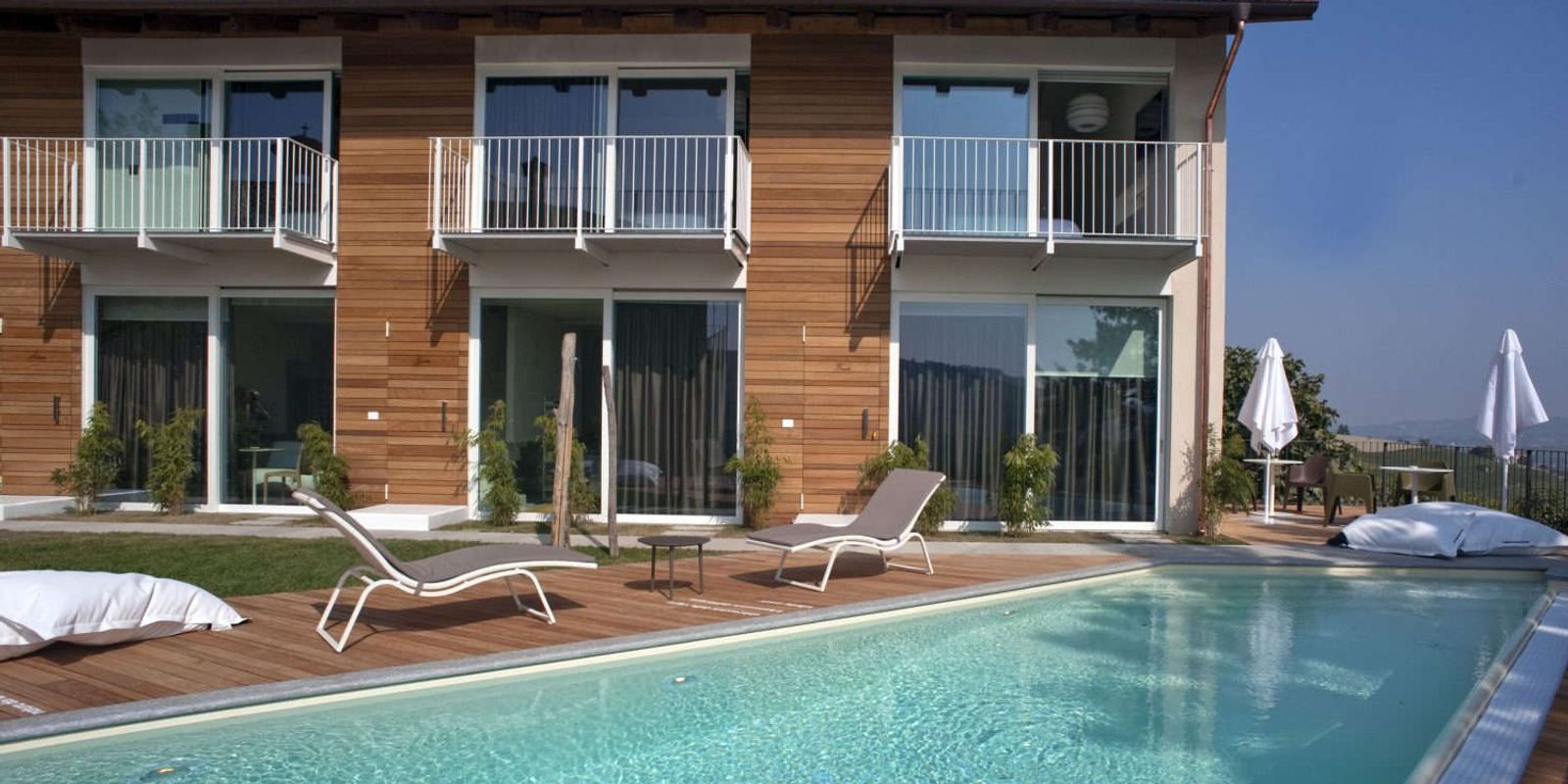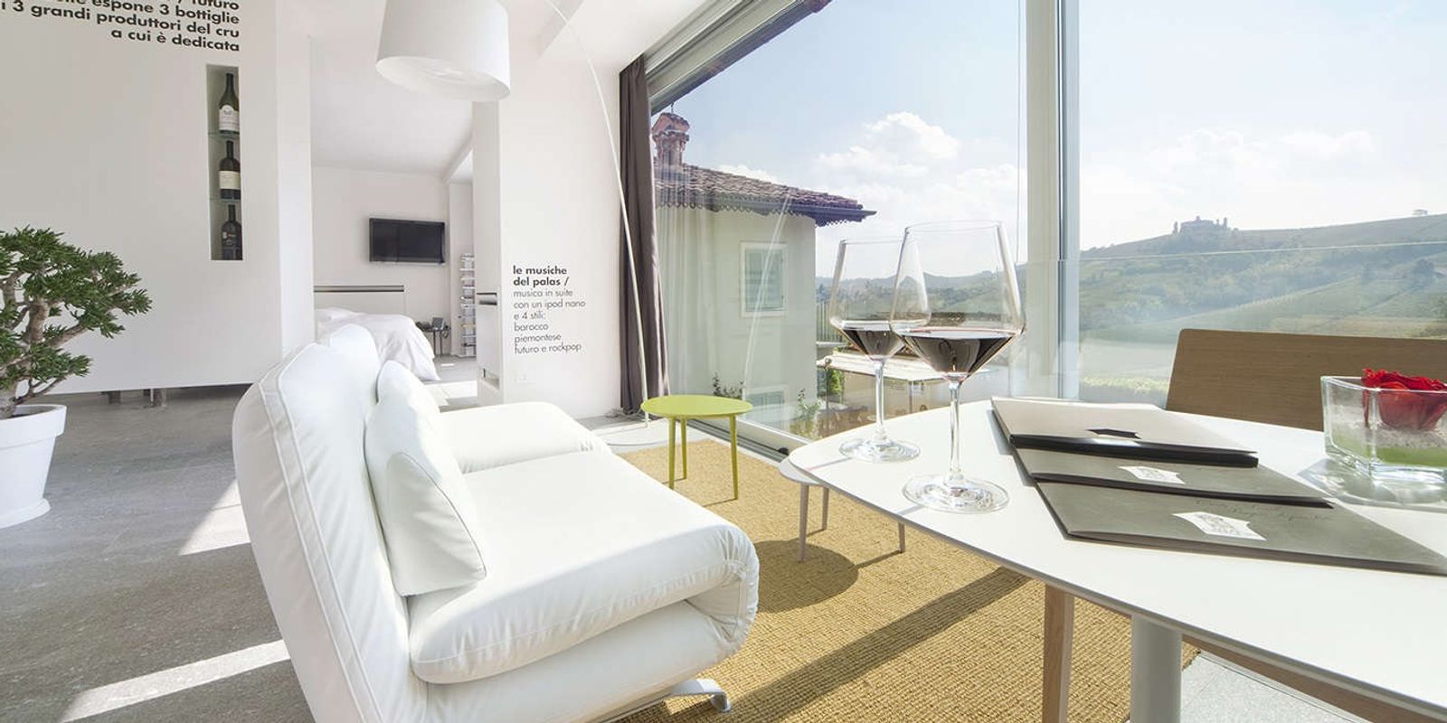 11 индивидуально сьютов разделены на категории Suites of the Past и Suites of the Future. В «сьютах прошлого» классические интерьеры и декор, стилизованный под эпоху барокко. В «сьютах будущего» — интерьеры в стиле актуальный минимализм. Из окон открывается вид на долины и виноградники. В некоторых сьютах есть собственные террасы и частные спа-зоны с джакузи и и парными.