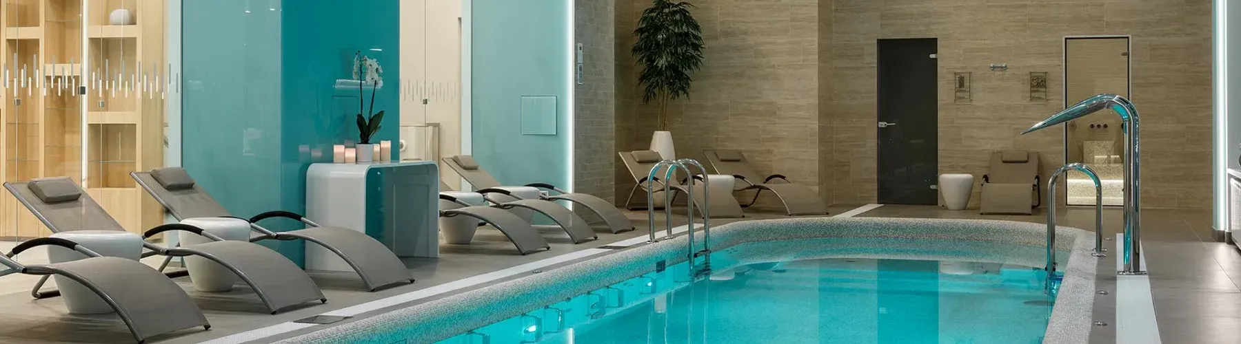 В распоряжении гостей: гидромассажный бассейн с кварцево-песчаными фильтрами, финская сауна, турецкий хаммам, лаборатория красоты и инновационные пространства — комната ментального благополучия (бесконтактная мультисенсорная терапия) и фитнес-зал с тренажёрами, использующими элементы дополненной реальности.